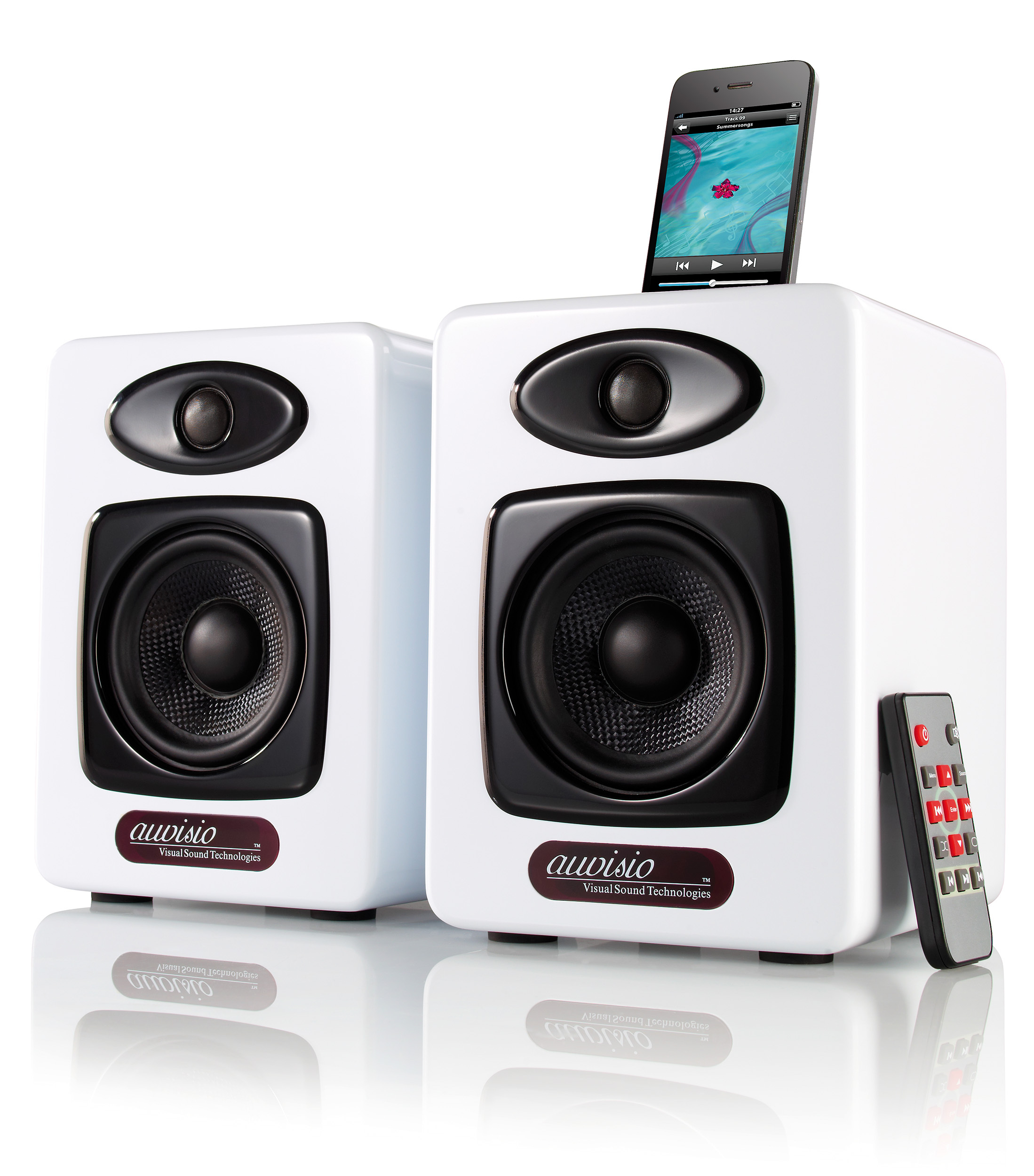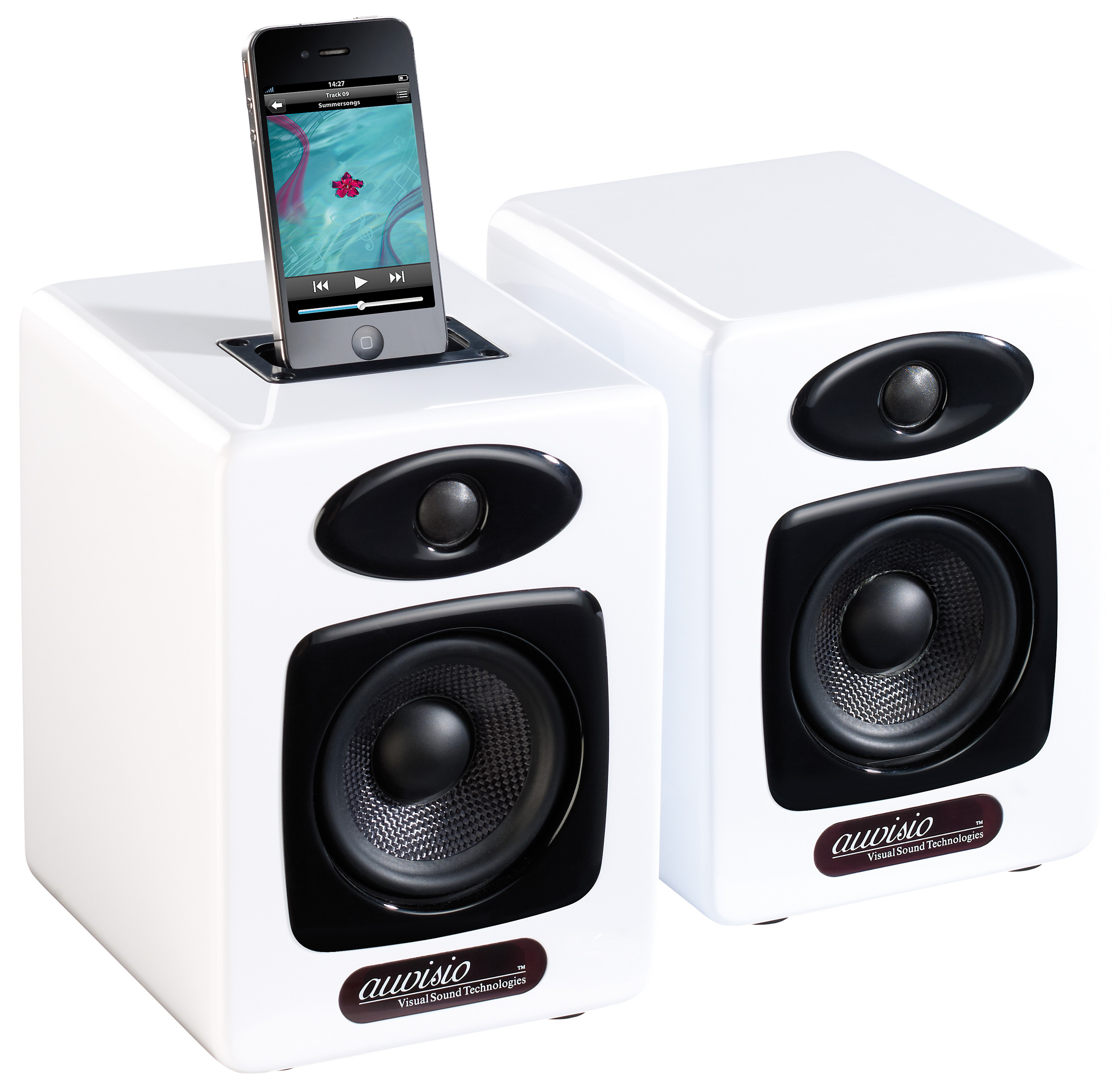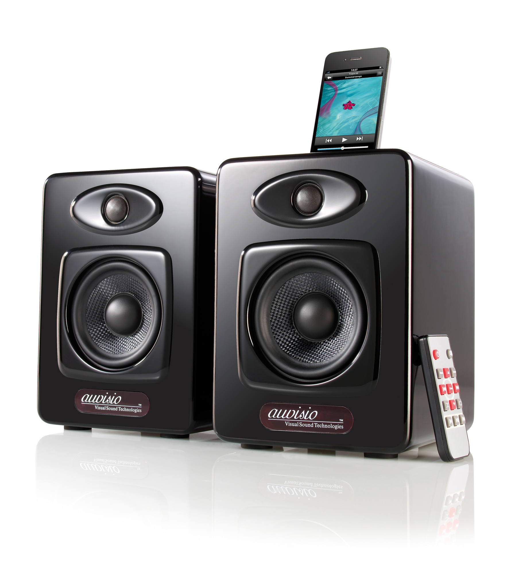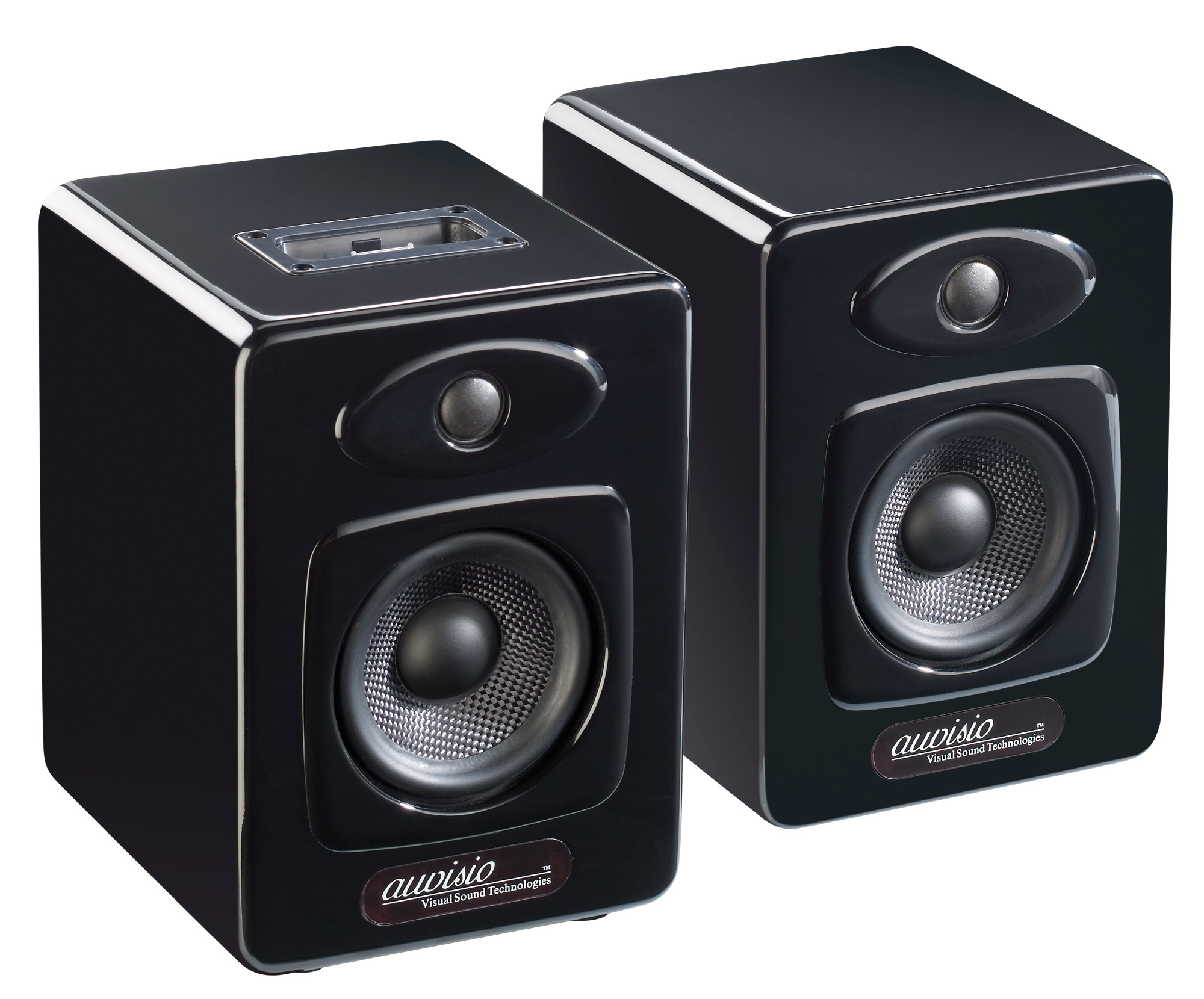 (lifepr) (Buggingen, 14.11.2012) Hier kommt der Spitzenklang ins Wohnzimmer. Diese Stereo-Lautsprecher von auvisio für iPod oder iPhone sind wahre Soundwunder.