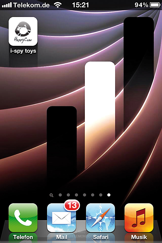 - Kostenlose Steuerungs-App "i-spy toys" (kinderleichtes englisches Menü mit Icons) im App-Store herunterladen