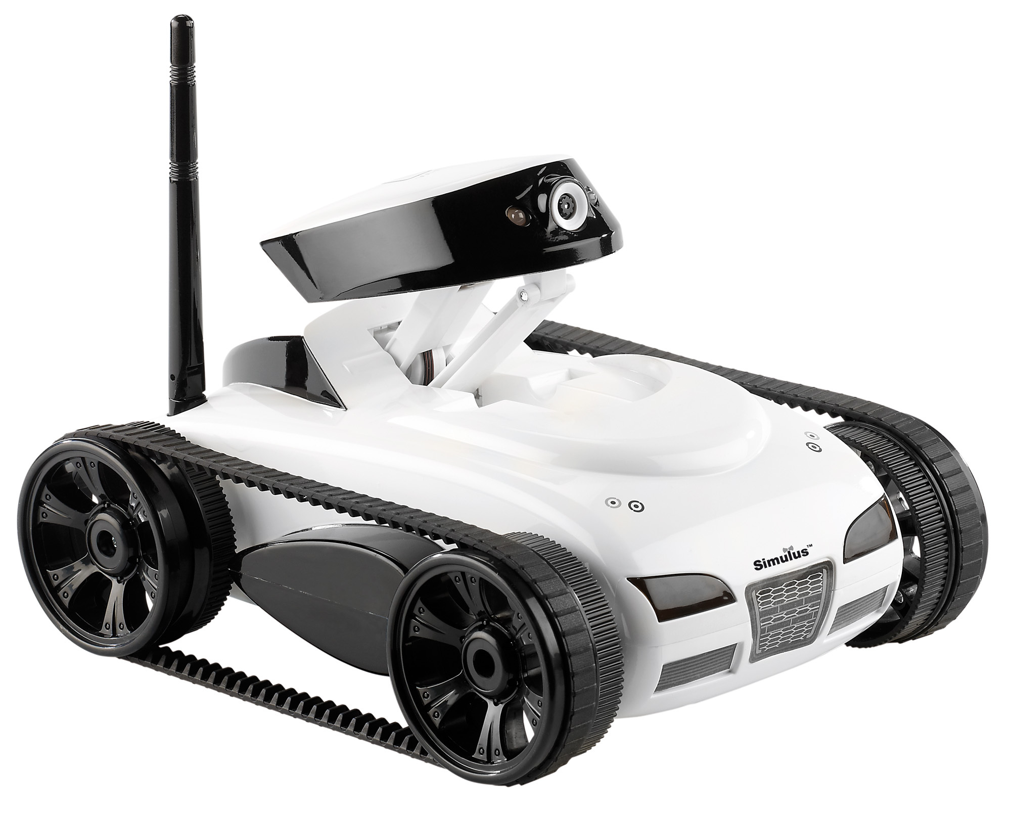 Der Trick: Im geländegängigen Fahrzeug, einer pfiffigen Mischung aus Panzer und Sportwagen, ist eine leistungsstarke Farbkamera integriert! Die sendet Live-Bilder direkt über WLAN auf iPhone, iPad oder iPod Touch. So kann man alles in Echtzeit verfolgen und ganz gezielt steuern.