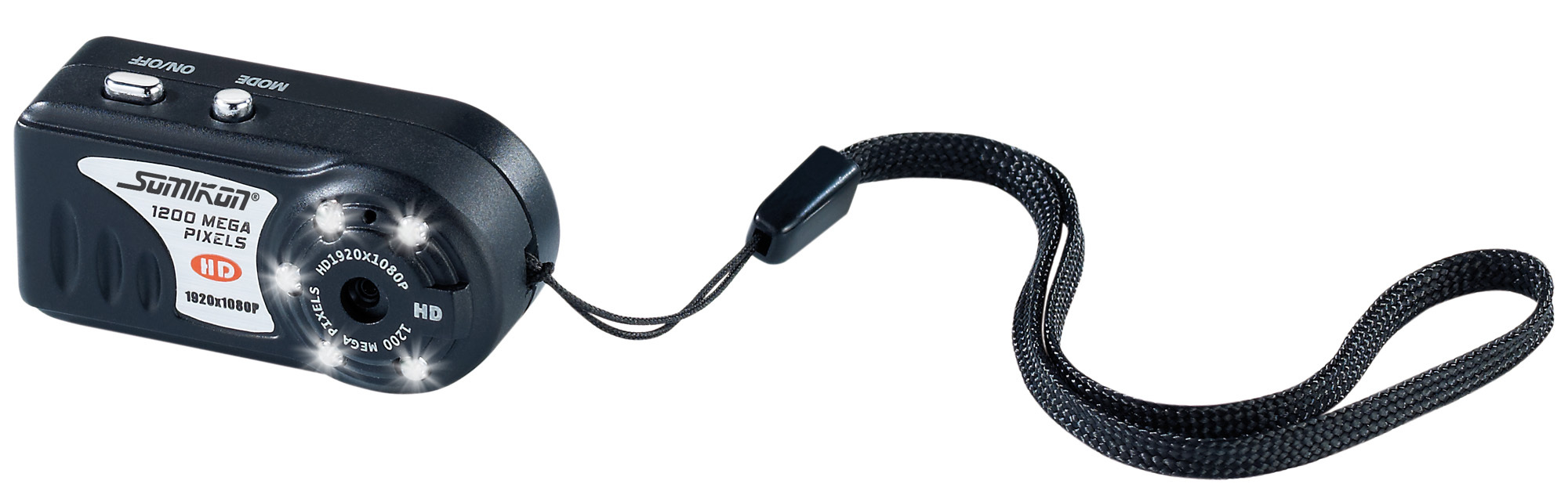 (lifepr) (Buggingen, 20.03.2013) Diese Mini-Kamera von Somikon ist nicht nur federleicht und irre klein. Sie hat auch Infrarot- Nachtsicht - für Full HD sogar im Dunkeln.