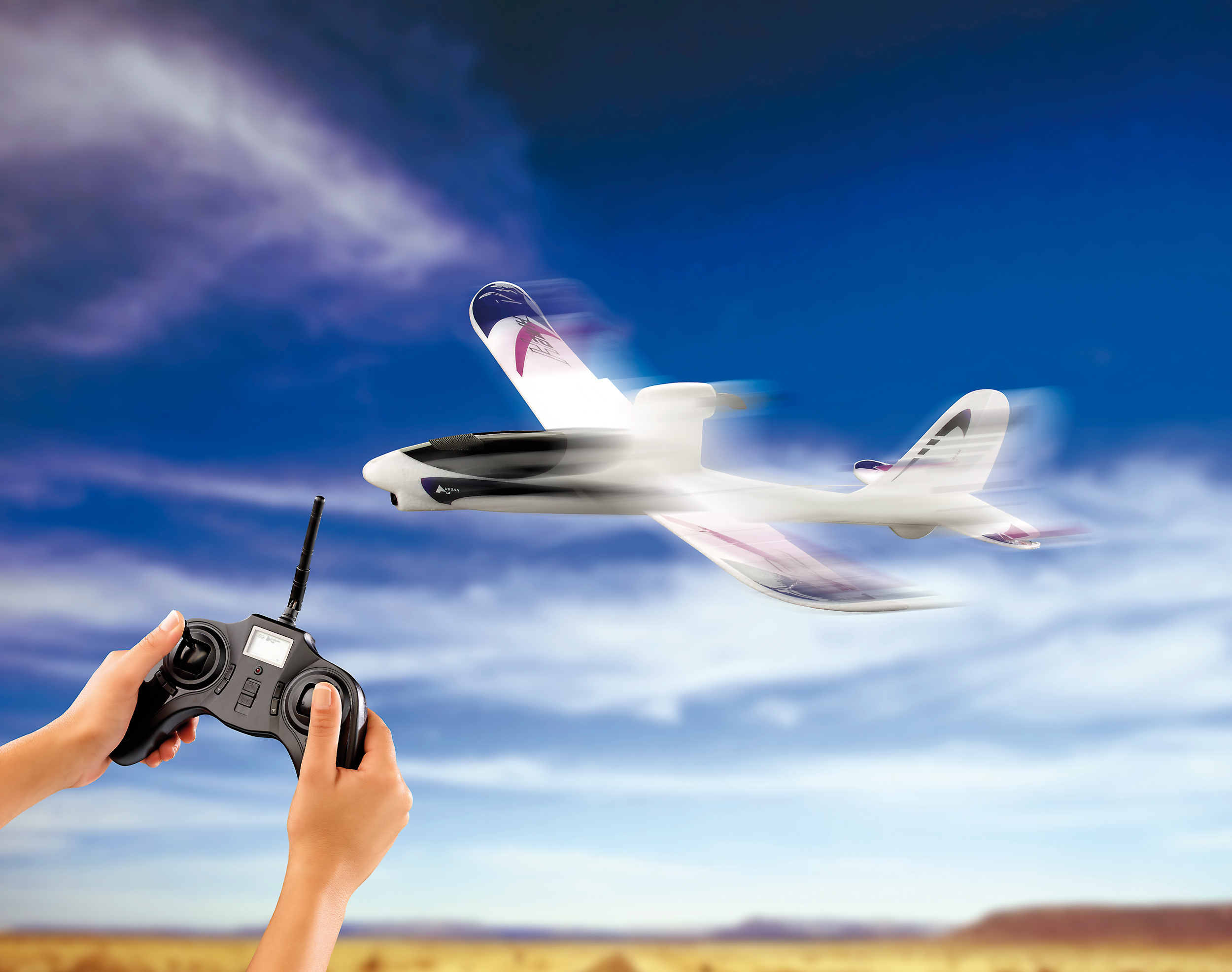 Die 4-Kanal-Steuerung ermöglicht komplexe Flug-Manöver bei maximaler Kontrolle. Der elektronische Autopilot sorgt dabei jederzeit für optimale Bedingungen und hält den Flieger ruhig in der Luft.