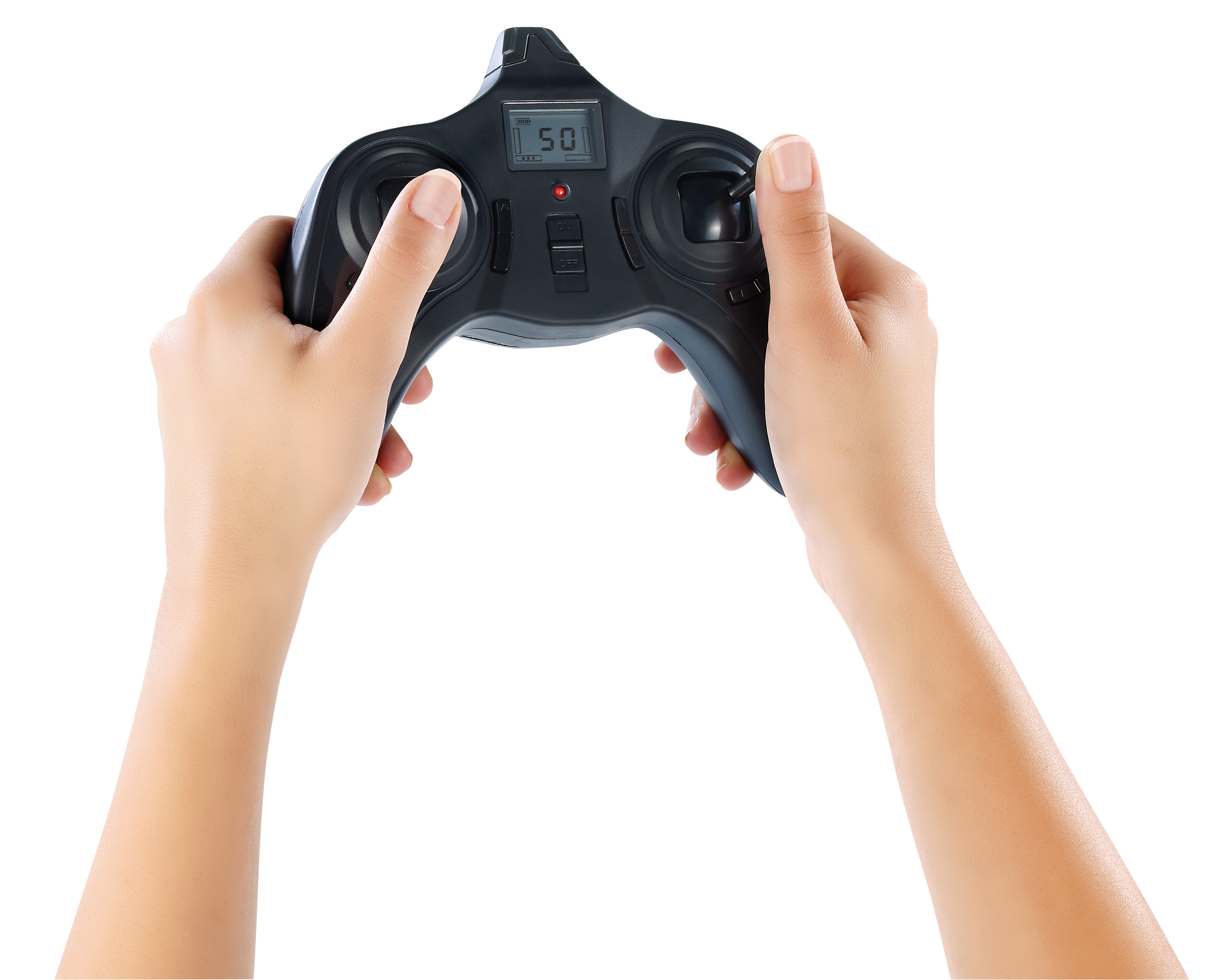 - 4-Kanal-Funkfernsteuerung: auf/ab, vorwärts/rückwärts, links/rechts drehen, links/rechts schweben