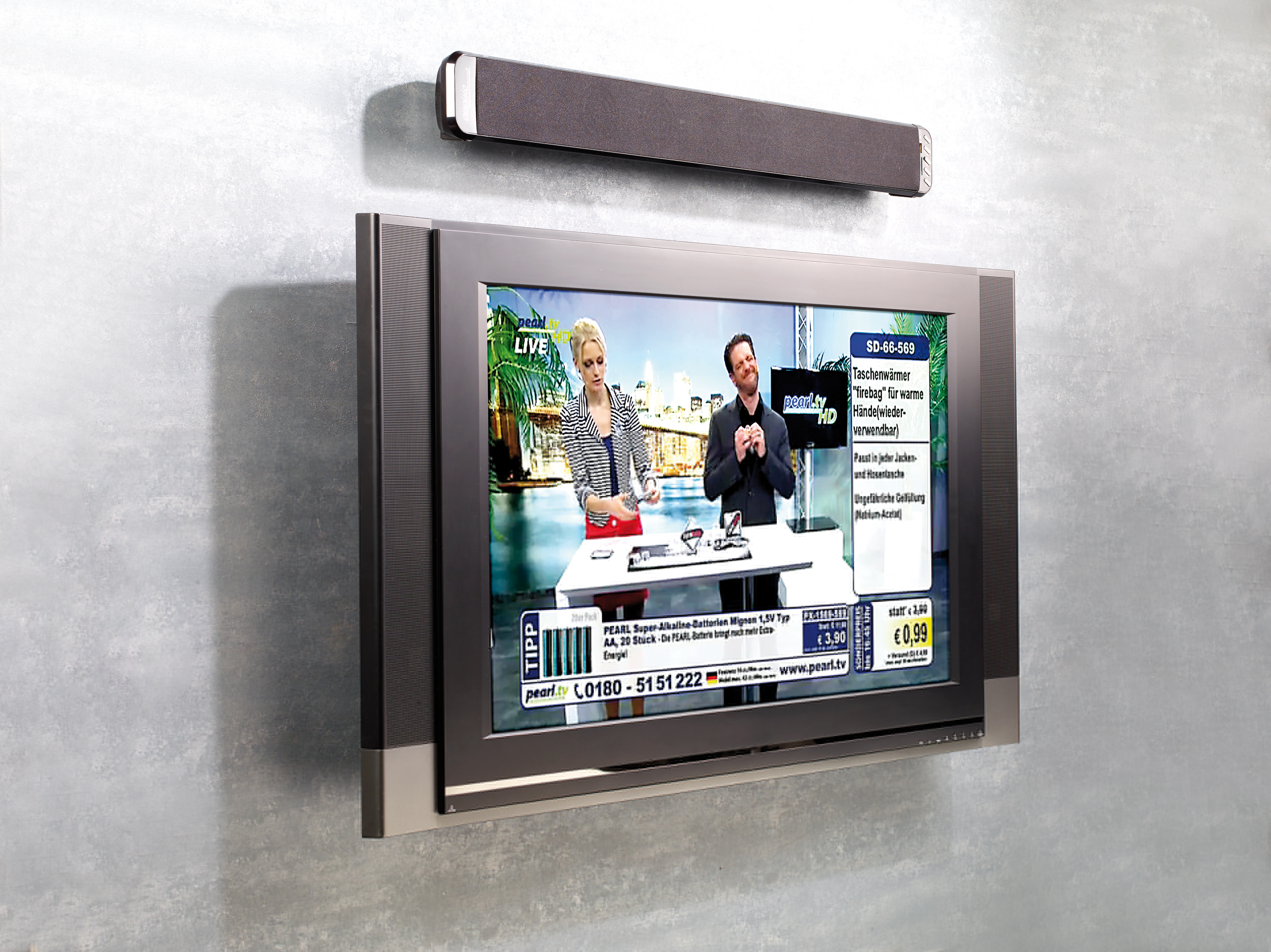 (lifepr) (Buggingen, 03.01.2014) Viele Menschen ärgern sich über den schlechten Sound ihres Flat-TV. Die Geräte werden immer dünner und leistungsstärker, doch ein ordentlicher Klang bleibt dabei oft auf der Strecke. Auch die Verbindung mit externen Soundquellen wie Stereoanlage und Smartphone gestaltet sich schwierig: Entweder gibt¹s unschönen Kabelsalat oder es drohen technische Hürden durch wenig kompatible Kabellostechnik. Gleich drei einfache Lösungen für gestresste Soundliebhaber präsentiert jetzt der Versender Pearl. Es sind leicht zu montierende und installierende Soundbars wahlweise mit Bluetooth und/oder Subwoofer. Natürlich sind die Bluetooth-fähigen Geräte der Serie dank der Standards A2DP und AVRCP kompatibel mit allen entsprechenden Smartphones, Tablets und MP3-Playern.
