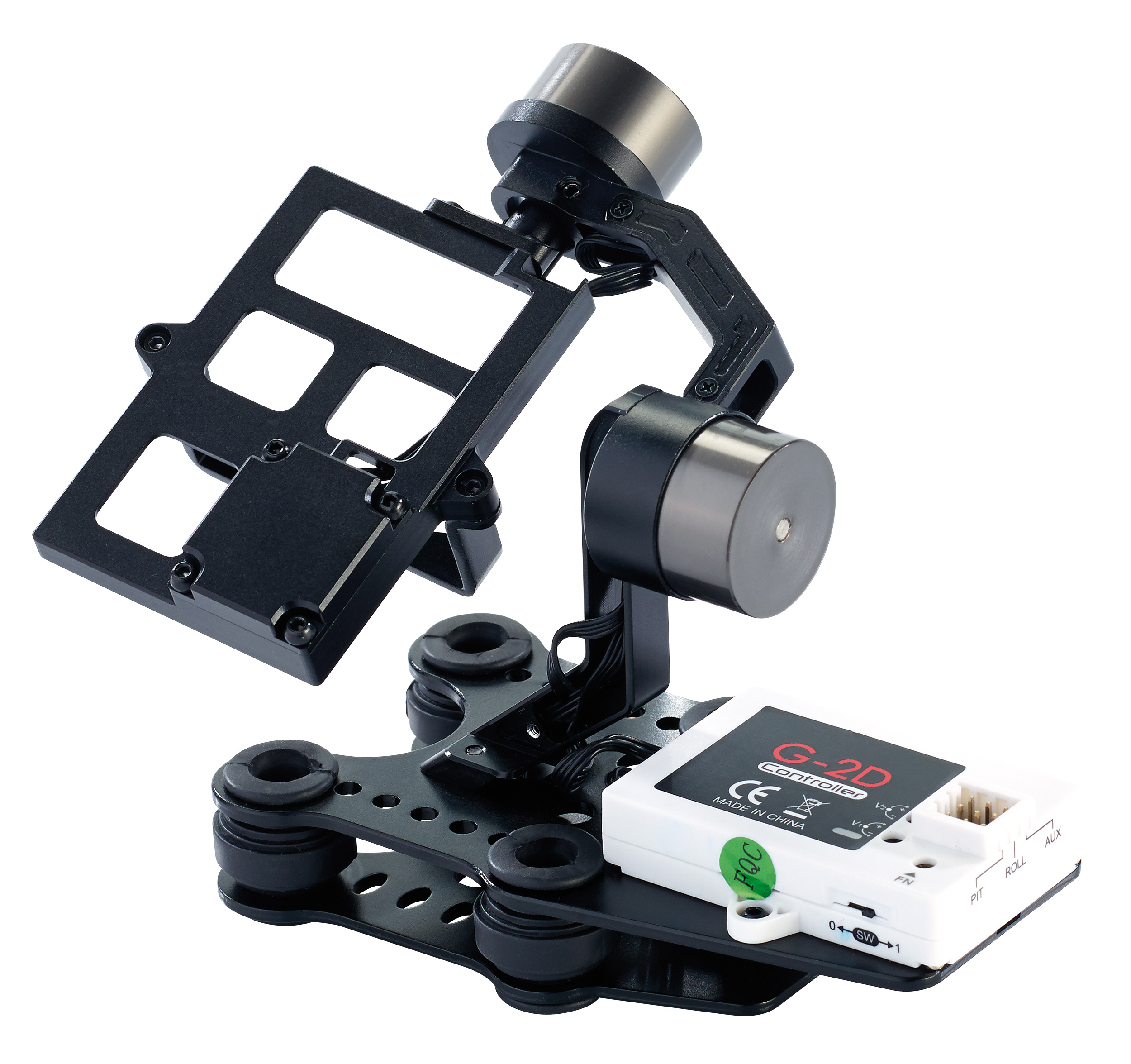 So hat man die Hände frei, um selbst im Flug die Kamera-Perspektive anzupassen. Denn die Kamera-Halterung ist über die Fernsteuerung in 2 Achsen verstellbar. Die kardanische Aufhängung sorgt für wackelfreie Bilder.