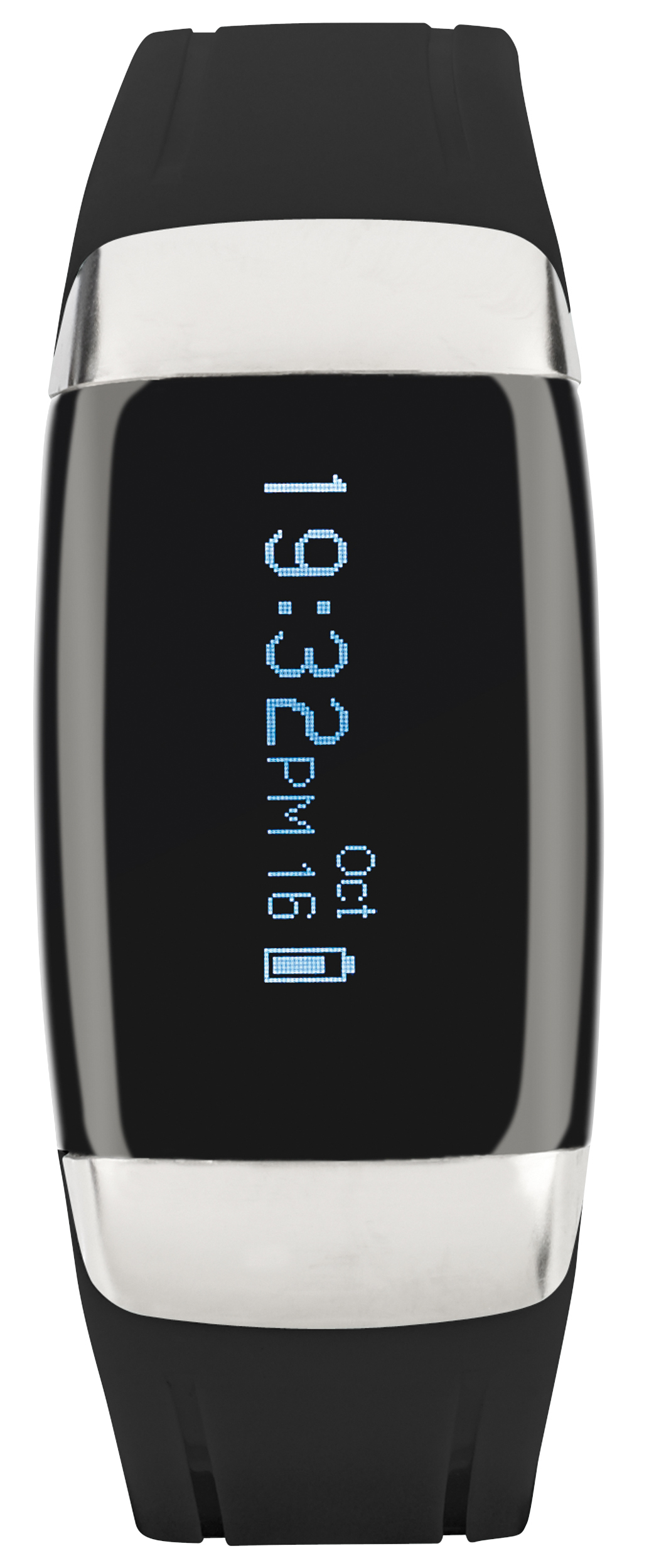 Das in edlem Materialmix aus hautfreundlichem Kunststoff und Aluminium gefertigte Fitnessarmband FBT-60 V5 der PEARL-Eigenmarke newgen medicals erfüllt die höchsten Ansprüche zu einem attraktiven Preis von unter 50 Euro. Neben Uhrzeit und Datum werden auf dem OLED Display beispielsweise die zurückgelegten Schritte, die Streckenkilometer und die Herzfrequenz angezeigt. Der Puls kann bei Bedarf manuell gemessen werden. Doch das ist nicht alles: Das Armband erinnert auch an das tägliche Training, fungiert als Vibrationswecker, wertet nachts Schlaf- und Ruhephasen aus und ist wasserdicht nach IP67-Norm. D. h. es ist vor Schweiß, Regen und bei kurzem Untertauchen optimal geschützt. Die durch das Armband erhobenen Daten werden einen Monat lang gespeichert. Am Android-Smartphone oder per iPhone kann der Träger die Auswertungen in anschaulichen Graphiken verfolgen. Dazu werden sie einfach per Bluetooth an das Smartphone übertragen. Die entsprechende App kann kostenlos im jeweiligen App-Store heruntergeladen werden. Systemvoraussetzungen: mindestens iPhone 4s bzw. Android-Gerät mit mindestens installiertem Android 4.3 sowie Bluetooth 4.0 Funktechnologie.
