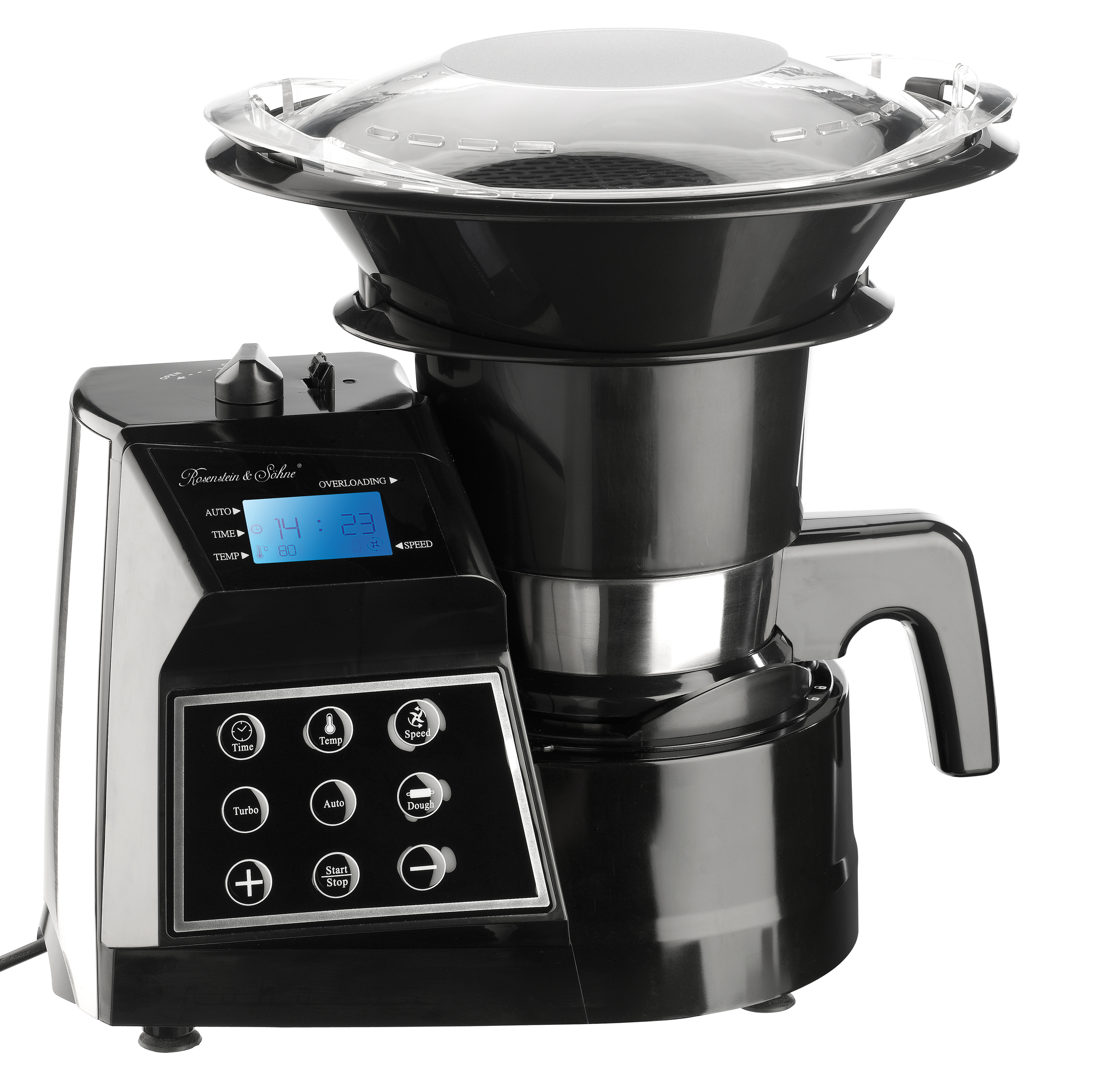 12 Funktionen in 1 Gerät: Kochen, Dampfgaren, Schmelzen, kontrolliert Erhitzen, Zerkleinern, Pürieren, Mahlen, Kneten, Mixen, Rühren, schaumig Schlagen, Emulgieren (z.B. für Mayonnaise)