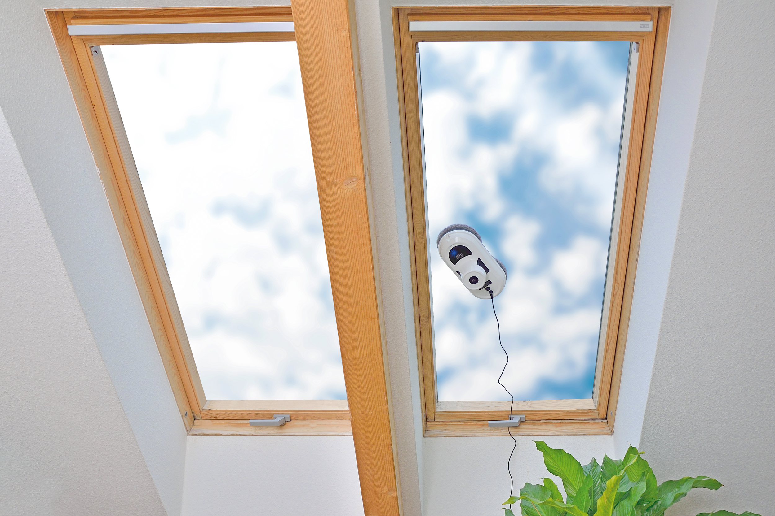 Einfach ans Fenster setzen und einschalten. Schon saugt er sich fest und sorgt zuverlässig für streifenfreie Sauberkeit - sogar an leichten Dachschrägen. Praktisch: Der Roboter ist kleiner als ein Schuhkarton und nimmt kaum Platz im Putzschrank weg.
