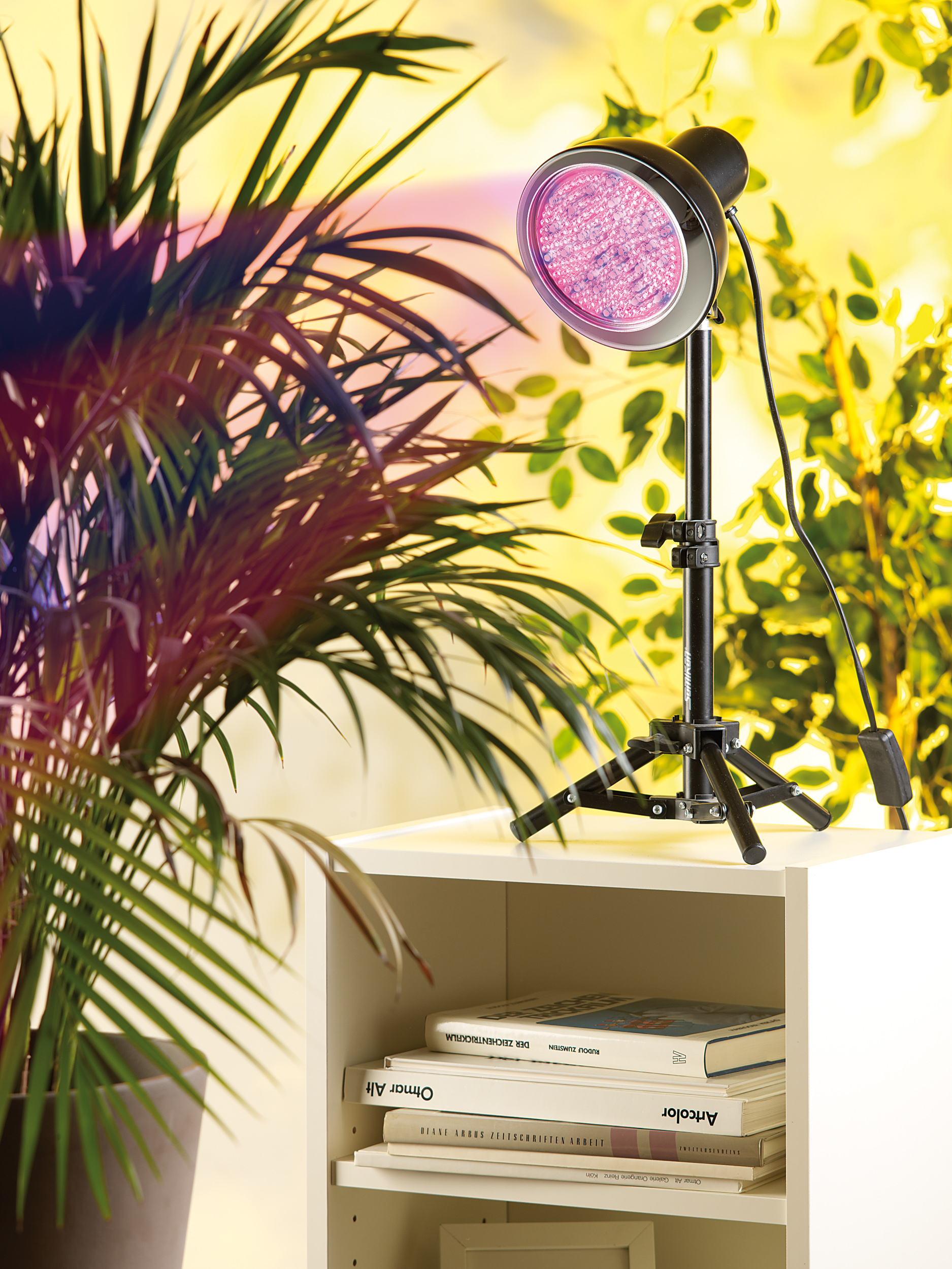 Mit ihrer Mischung aus 168 roten und blauen LEDs bietet die Lunartec LED-Pflanzenlampe zum Preis von 32,90 Euro das optimale Lichtspektrum für ein regelmäßiges und beschleunigtes Pflanzenwachstum. Dabei ist es egal, ob im Wohnzimmer Setzlinge beleuchtet werden oder ein professionelles Gewächshaus im Einsatz ist, die Wellenlänge von 460 - 465 nm (blau) bzw. 625 - 630 nm (rot) ist bei jeder Pflanze einsetzbar. Schraubt man die Lampe beispielsweise in eine Stativleuchte mit E27 Fassung, so lässt sich die positive Lichtbestrahlung auch für Blumen auf schmalen Fensterbänken, etwa im Badezimmer, erreichen. Top: Die LEDs bleiben auch bei langem Betrieb angenehm kühl, die Topf-Erde dadurch länger feucht und die Pflanzen gesund.