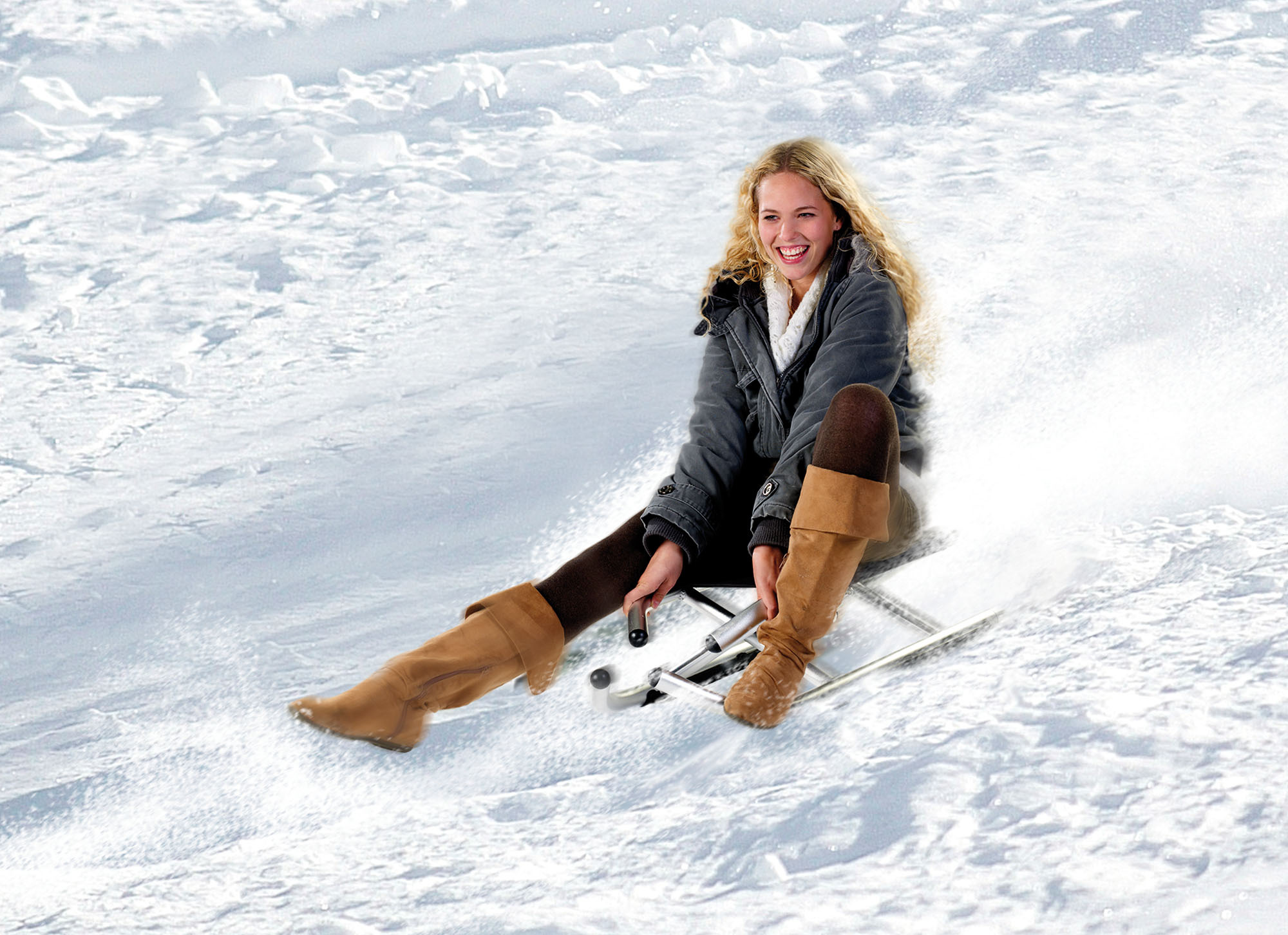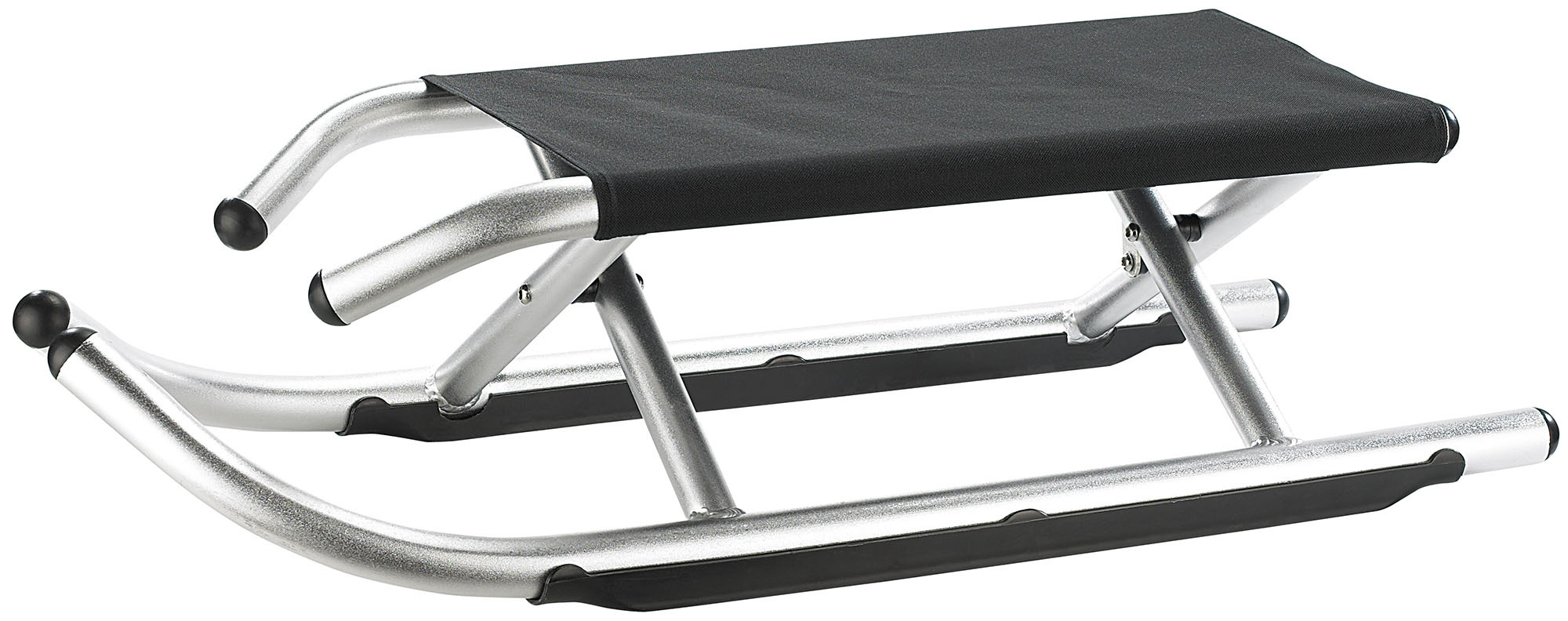 Sicher ist auch das nächste Modell, der ultraleichte, zusammenklappbare Aluminium-Schlitten von Speeron. Seine Maxime: Hochtragen, aufklappen und losfahren! Für den schicken Flitzer mit einer Sitzhöhe von 25 cm dürfen 55,90 Euro auf den Tisch gelegt werden. Dafür erhält der Käufer einen Schlitten, der mit 3.100 Gramm einer der leichtesten überhaupt ist. Im Auto oder der Garage macht er sich mit nur 10 cm Klapphöhe ganz flach. Auf der Piste sorgen seine integrierten Kunststoffkufen für die nötige Spurtreue und damit auch für Geschwindigkeit. Personen mit einem Maximalgewicht von 120 kg können den Schlitten nutzen.