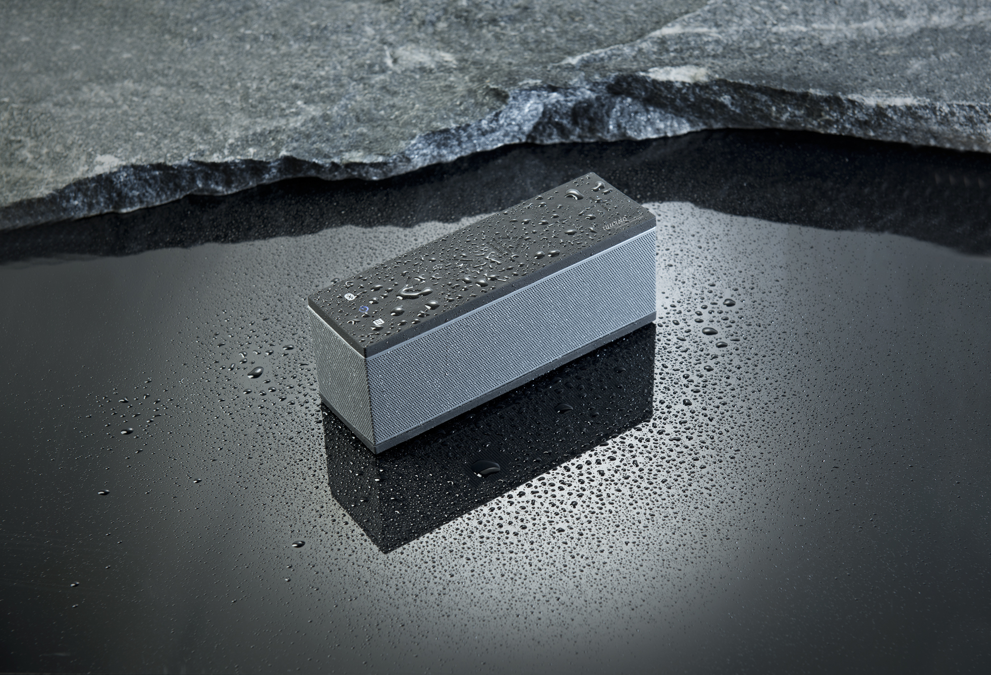 Spritzwassergeschützt und robust: Dank gummiertem Kunststoffgehäuse steckt der Lautsprecher Spritzer locker weg, selbst wenn es bei der Wasserschlacht am Pool mal etwas heißer zugeht.