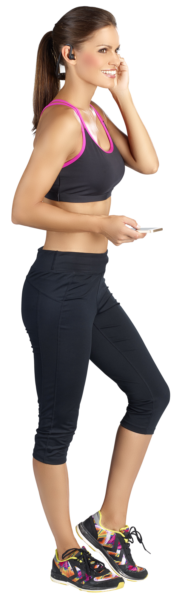 Schlanke Technik mit Freisprecheinrichtung: Über drei Tasten die Wiedergabe sowie Lautstärke steuern und Telefongespräche annehmen. So lässt es sich bei eingehenden Anrufen einfach weiter trainieren!
