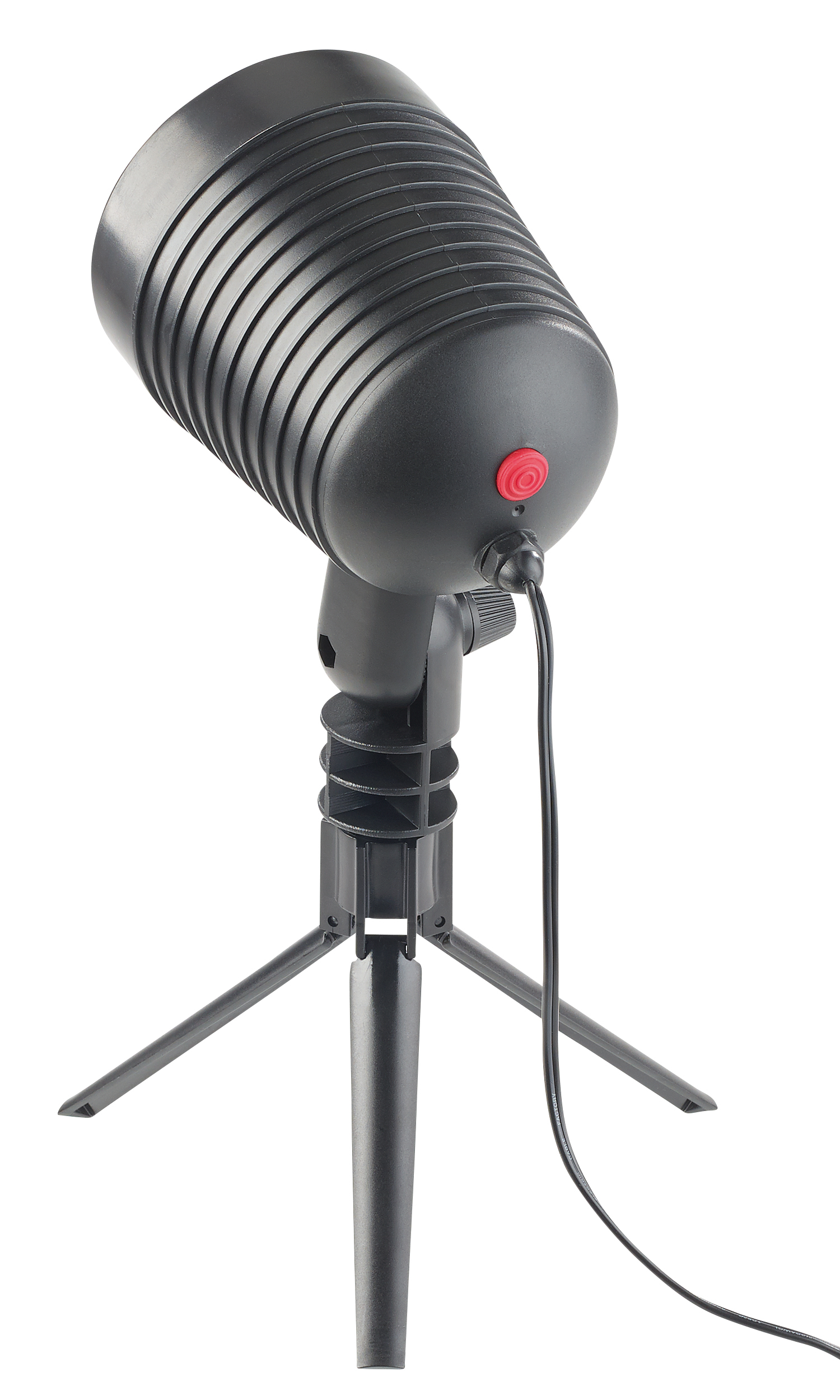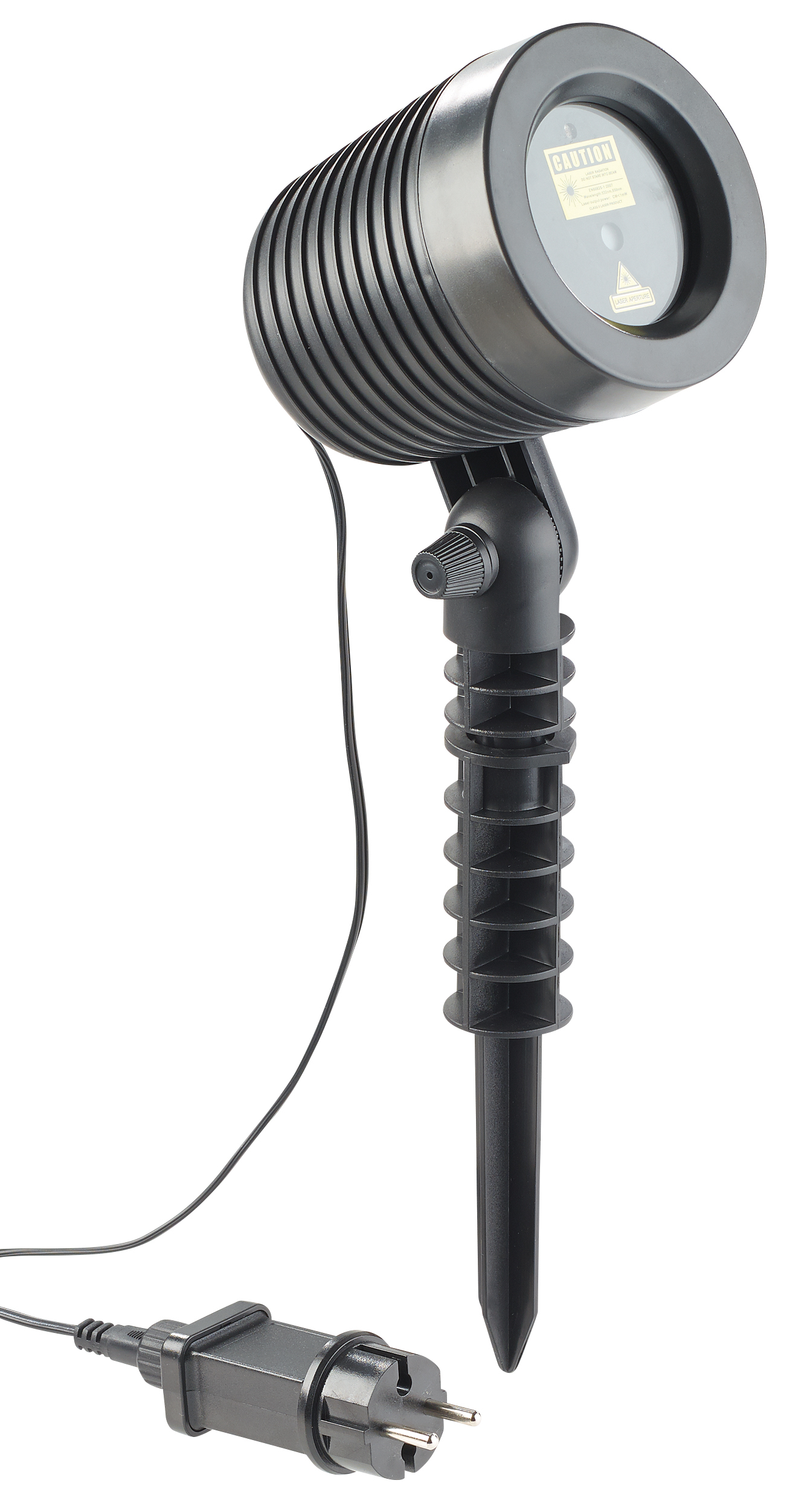 Flexibel aufstellen: Der Laser-Projektor lässt sich wahlweise am Standfuß oder Erdspieß befestigen. Und via kippbarem Gelenk mit Arretierung genießt man die Lichteffekte stets aus dem passenden Winkel.