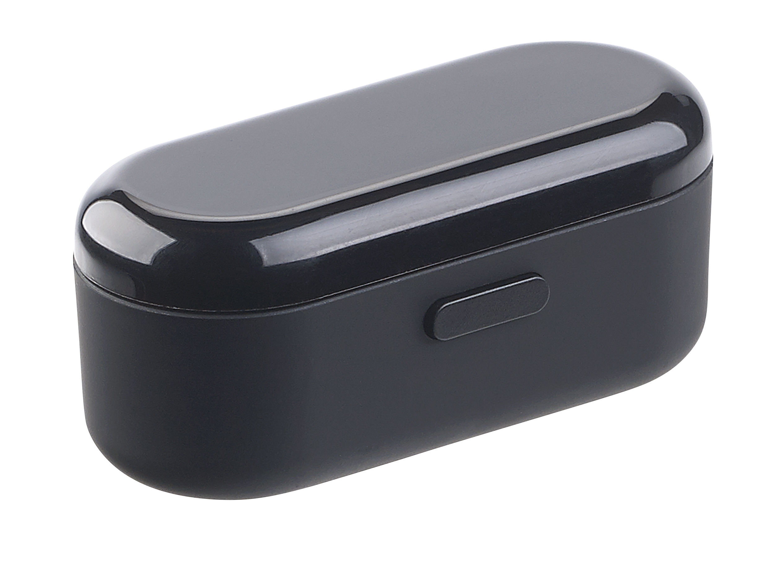 2in1-Aufbewahrungs- und Lade-Etui: Dank Powerbank mit 460 mAh Kapazität wird das Headset aufgeladen, wenn man es nicht benutzt. Bis zu 4-mal, auch unterwegs ohne Anschluss ans Stromnetz.