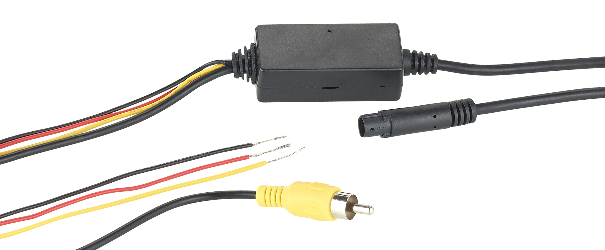 Video-Übertragung auch per Kabel: Wird der AV-Anschluss mit dem Autoradio, Navigationssystem oder Onboard-Monitor mit Video-Eingang verbunden, sieht man Kamerabild, Menü & Co. auch ohne Smartphone!
