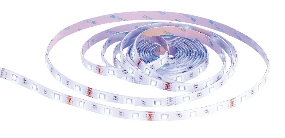 (lifepr) (Buggingen, 29.08.2017) Farbige Licht-Akzente setzen: Der LED-Streifen lässt sich dort verlegen, wo man Licht haben möchte. Ideal als indirekte Beleuchtung unterm Bett, hinter Möbeln und Fernseher, ums Fenster u.v.m. Dank selbstklebender Rückseite kommt man ohne Werkzeug aus!