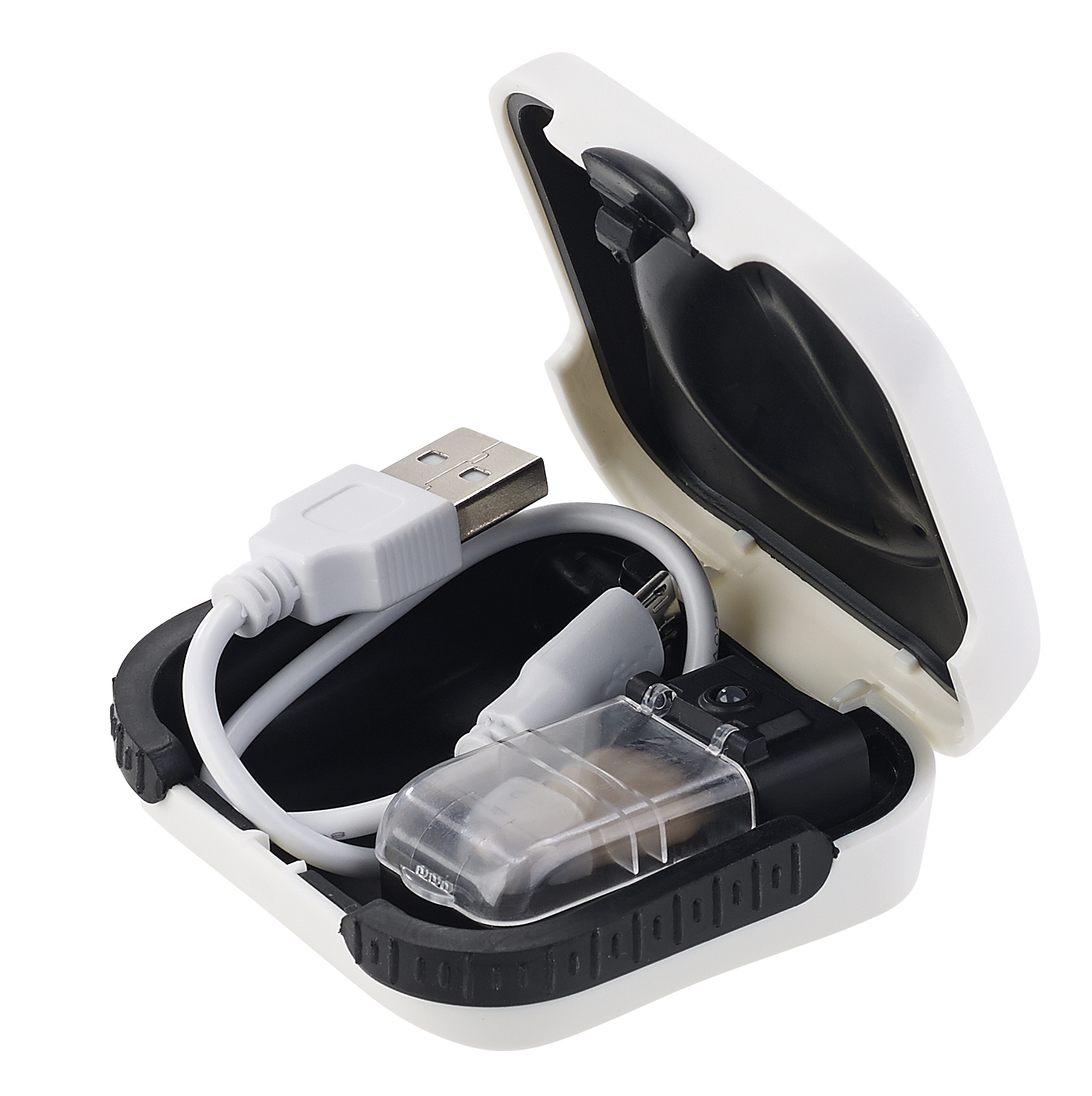 Komfortabel dank Akku und Ladestation: Nicht nur der Hörverstärker ist mini - auch die USB-Ladestation für den Akku-Betrieb ist kaum größer. In nur einer Stunde lässt sich der Hörverstärker damit aufladen - bei einer Akku-Lebensdauer von mehr als 500 Aufladungen.