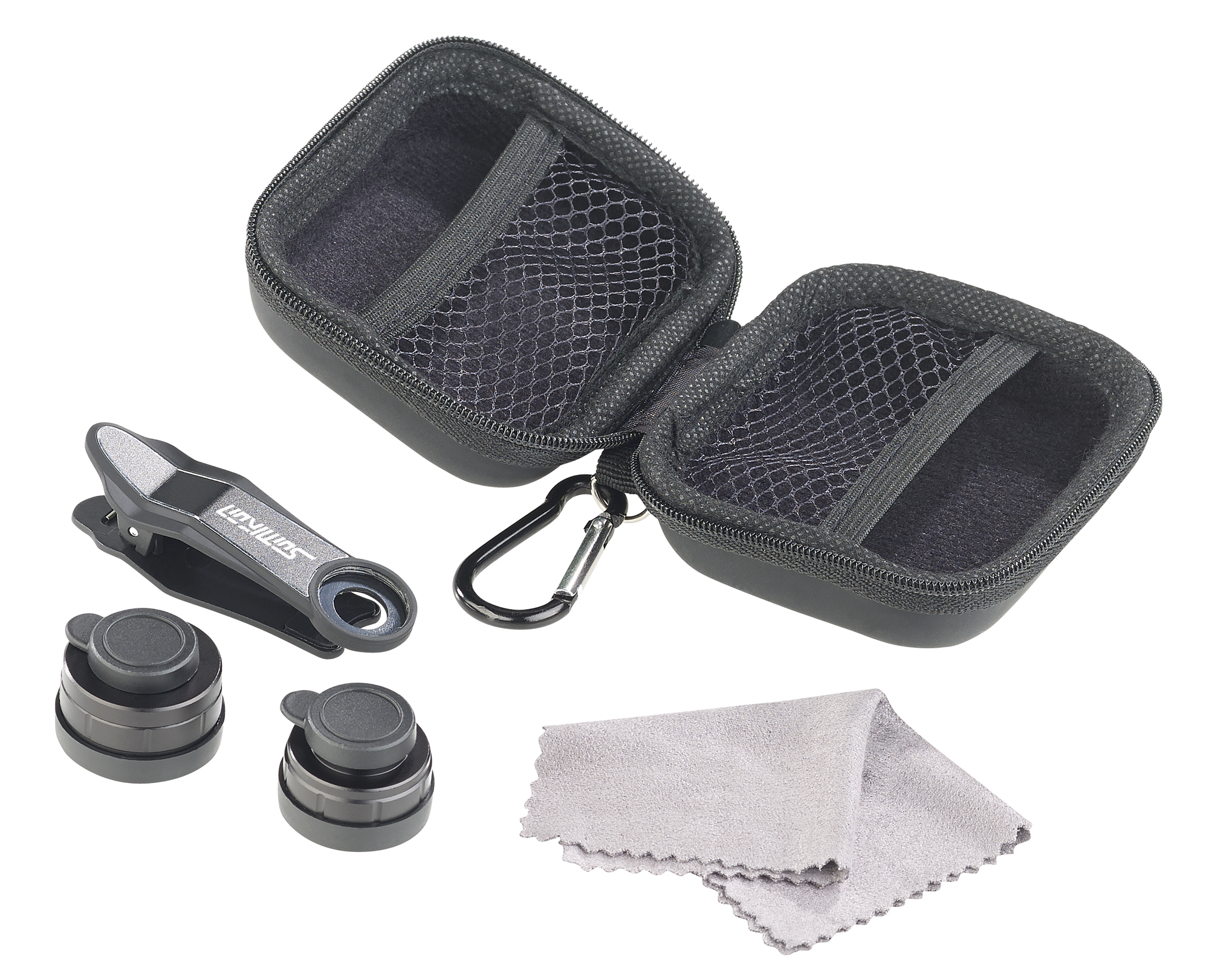 Die Linsen überall mitnehmen: Schutzkappen schützen die Vorsatz-Linsen vor Kratzern und Stößen. Unterwegs lassen sich die Linsen im robusten Hartschalen-Etui verstauen. So sind sie immer bestens geschützt. Und mit dem Mikrofaser-Tuch reinigt man die Linsen einfach und schonend.