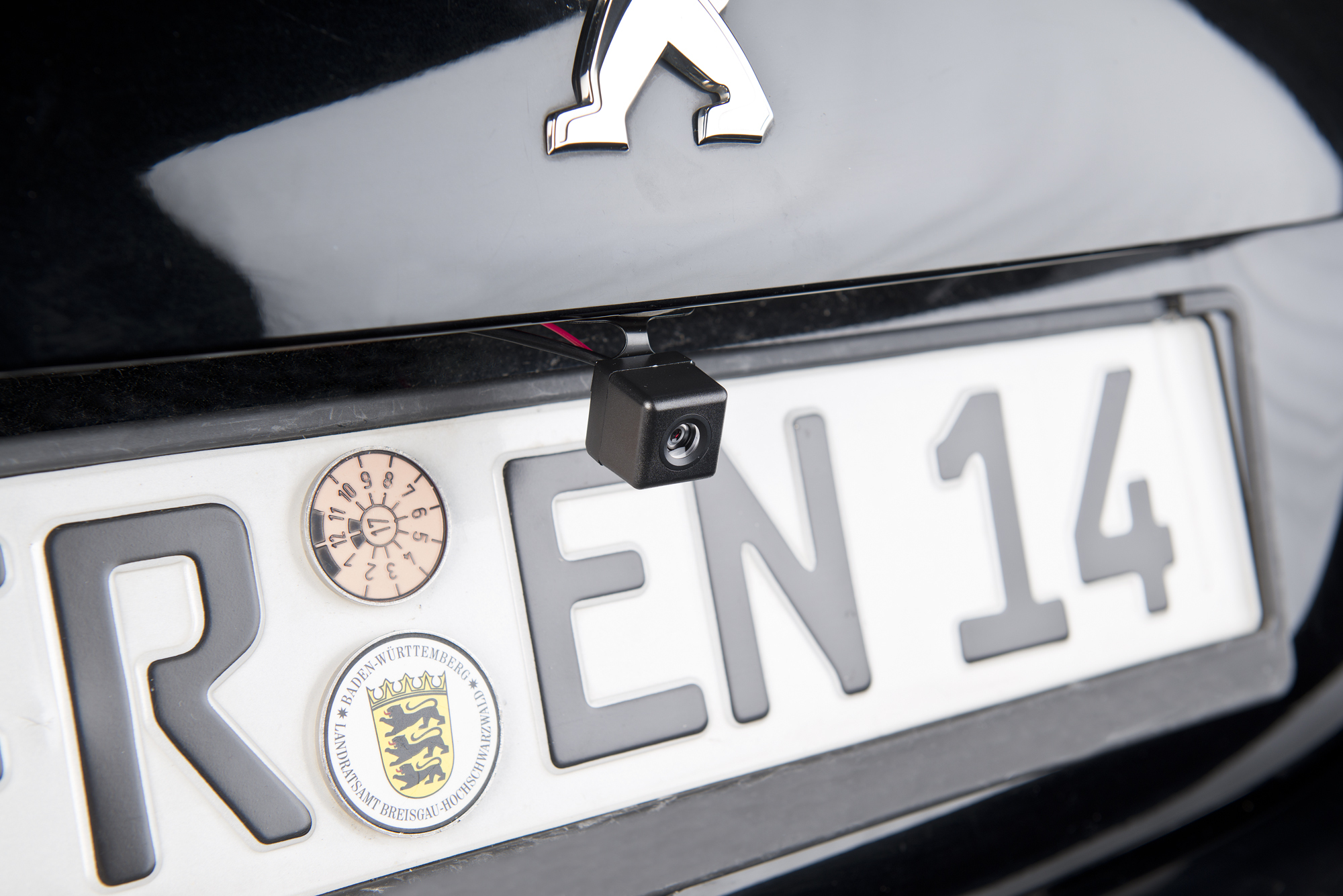 Aktiviert sich von selbst: An das Rückfahrlicht angeschlossen überträgt die Mini-Kamera das Bildsignal, sobald der Rückwärtsgang einlegt wird.