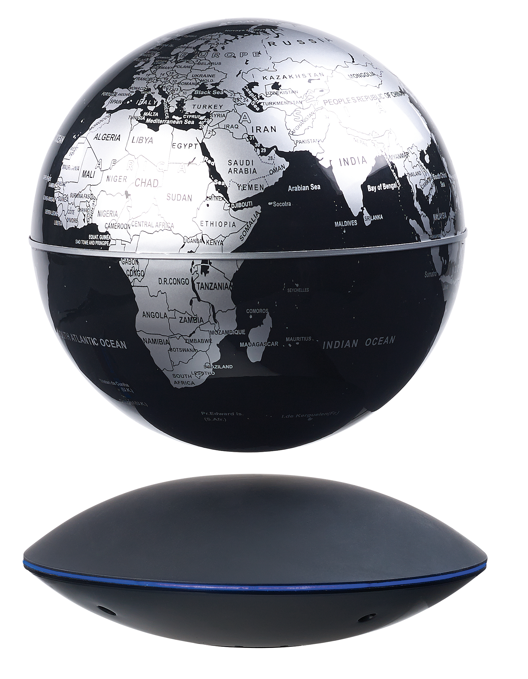 Die Macht der Physik nutzen: Ein starkes Magnet-System hält den Globus ein paar Zentimeter über der Basis in der Schwebe. Er bleibt auch in der Luft, wenn man mit der Hand darunter herfährt!