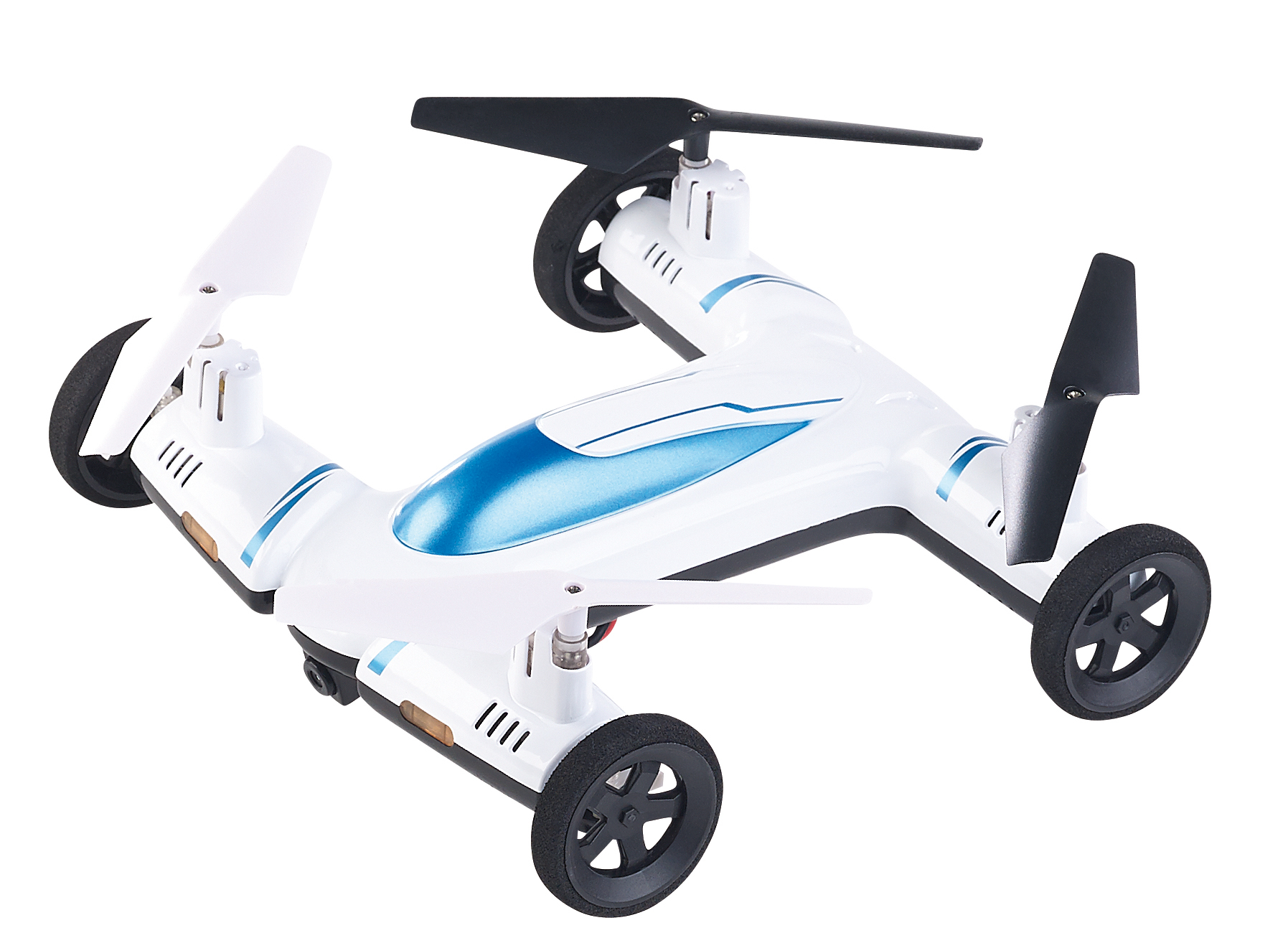 (lifepr) (Buggingen, 19.12.2017) Die Lüfte und die Straße erobern: Mit dem 2in1-Quadrocopter von Simulus fliegt und fährt man aus dem Stand heraus. Wenn der Weg am Boden blockiert ist, fliegt man einfach über das Hindernis hinweg!