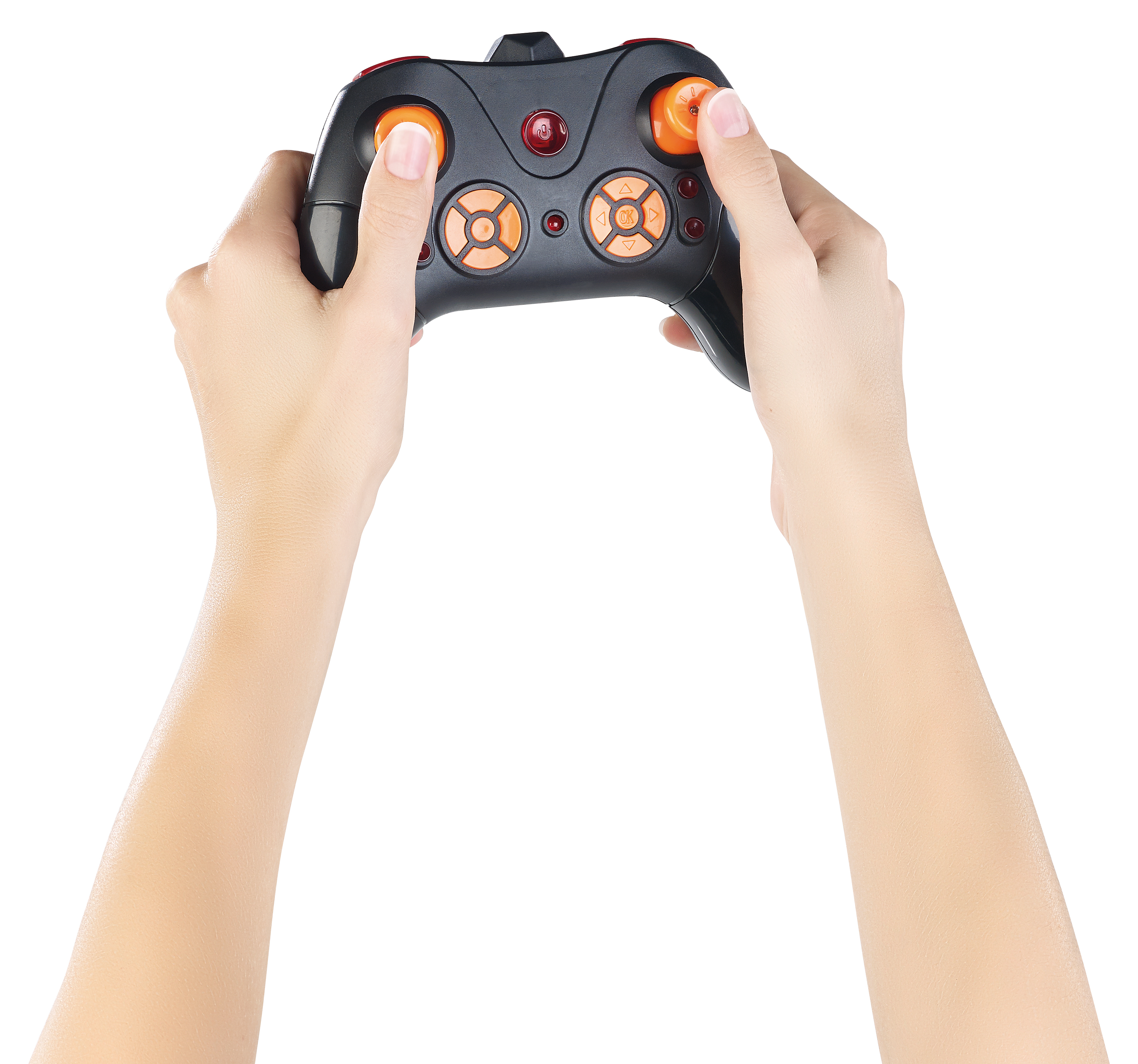 Die Steuerung wird zum Kinderspiel: Dank 6-Achsen-Gyroskop kann man mit nur wenig Übung perfekte Bahnen fliegen. Auf Knopfdruck führt man ganz einfach spektakuläre 3D-Manöver aus. Auch am Boden lässt sich der kleine Flitzer immer sicher ans Ziel lenken.