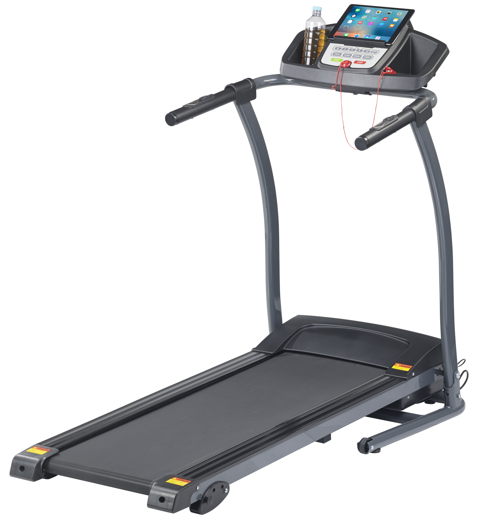 Das professionelle Lauftraining einfach zu Hause starten: Dank 3 Steigungsgraden und stufenlos einstellbarer Geschwindigkeit bis 12 km/h wird jetzt gezielt die Fettverbrennung angeregt! Zusätzlich trainiert man seine Kondition. Dabei hat man Geschwindigkeit, Distanz, Zeit, Kalorienverbrauch und Puls auf dem großen LCD-Display im Blick.