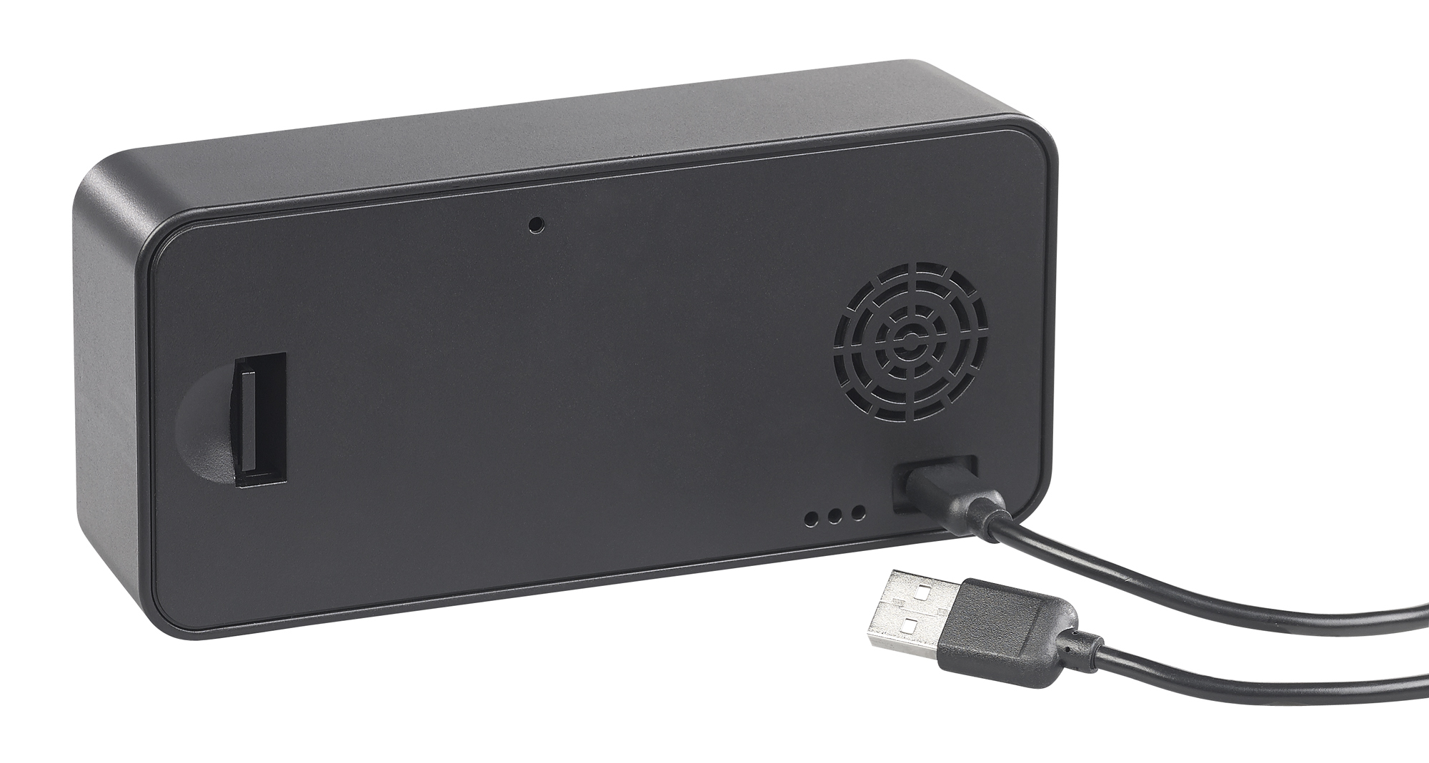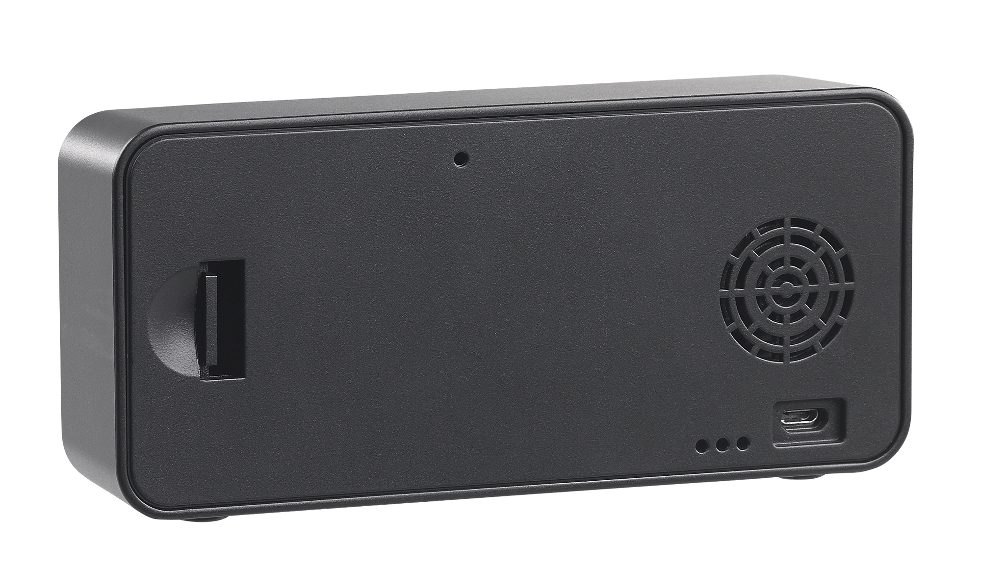 Aufnahmen an jedem Ort: Dank austauschbarem Akku stellt man den Kamera-Wecker auf den Nachttisch, ins Regal und an viele weitere Orte. Alternativ lässt sich das mitgelieferte USB-Kabel zum dauerhaften Netzbetrieb nutzen.