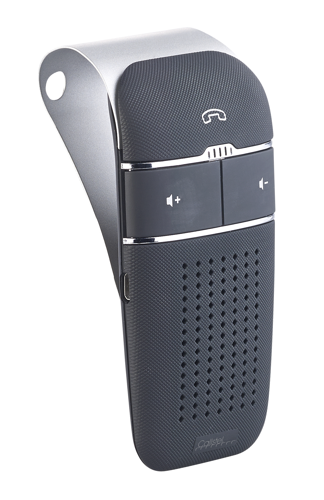 Im Auto sicher und legal telefonieren: Die Hände bleiben am Steuer und die Augen auf der Straße! Einfach die Freisprecheinrichtung von Callstel an die Sonnenblende klemmen und schon kann’s losgehen!