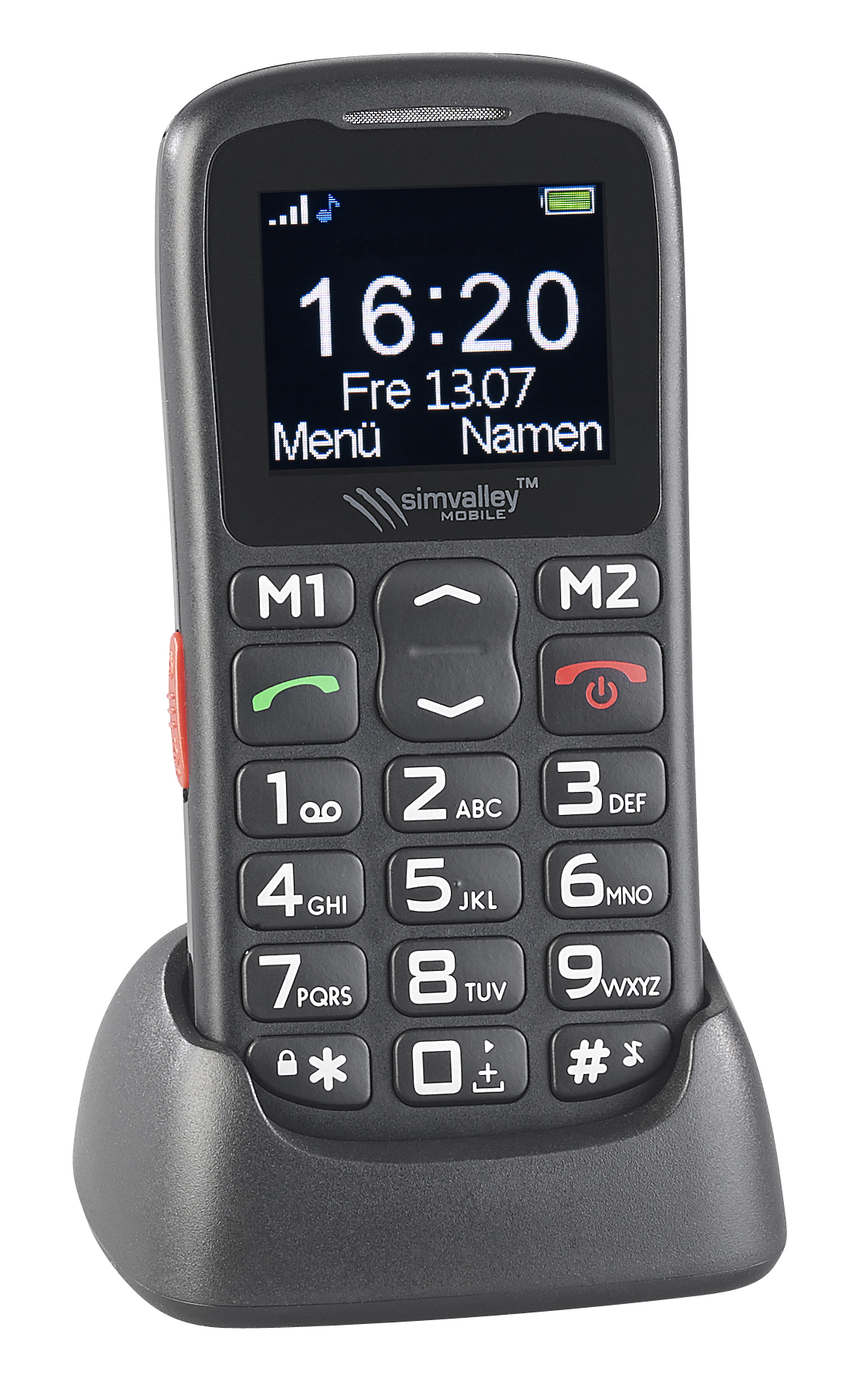 Und damit das Handy von simvalley MOBILE immer einsatzbereit ist, stellt man es einfach in die Ladeschale.