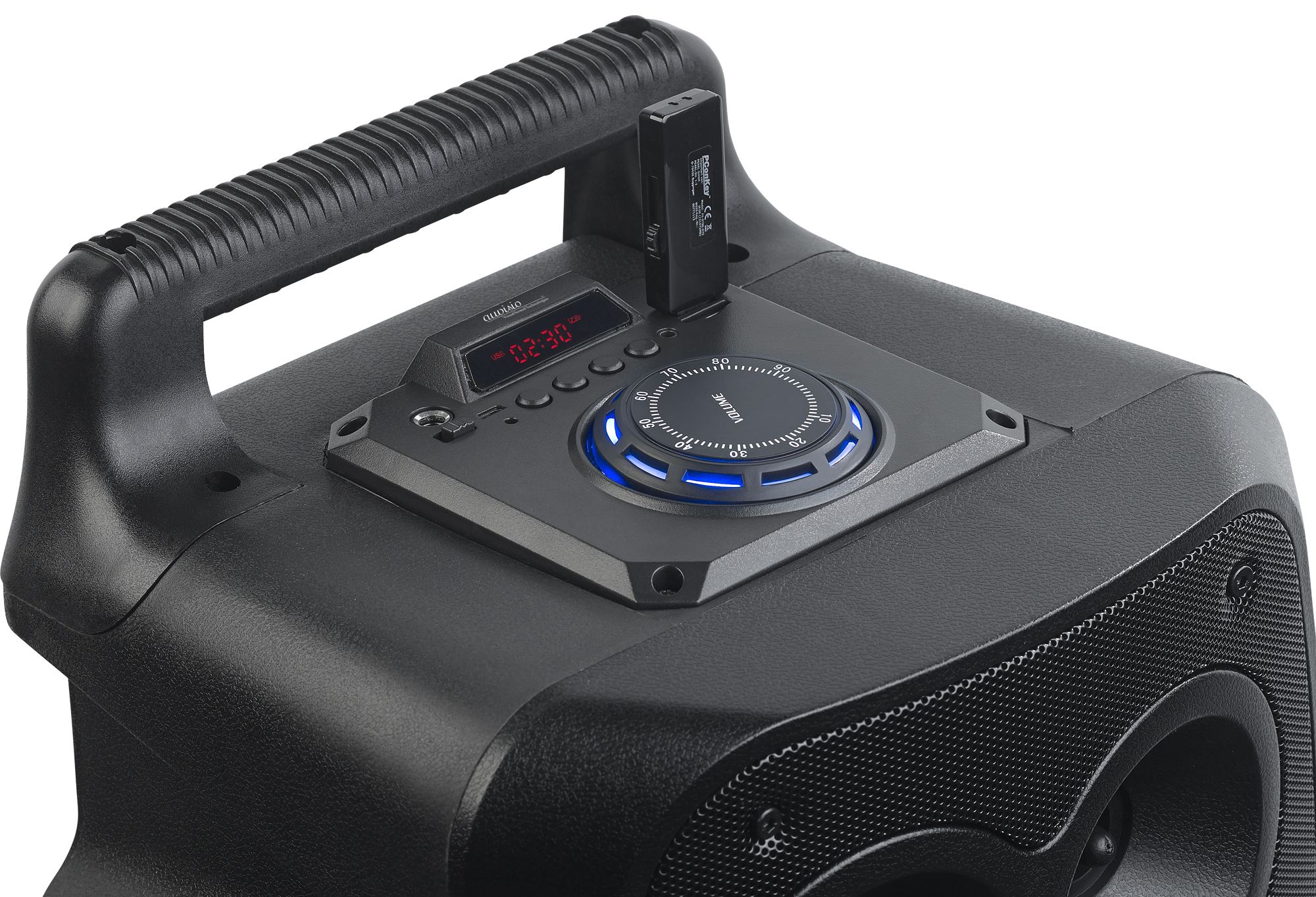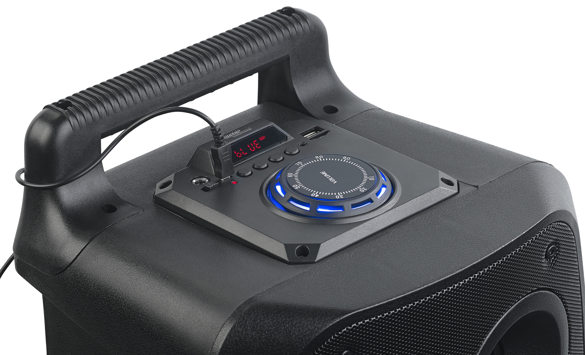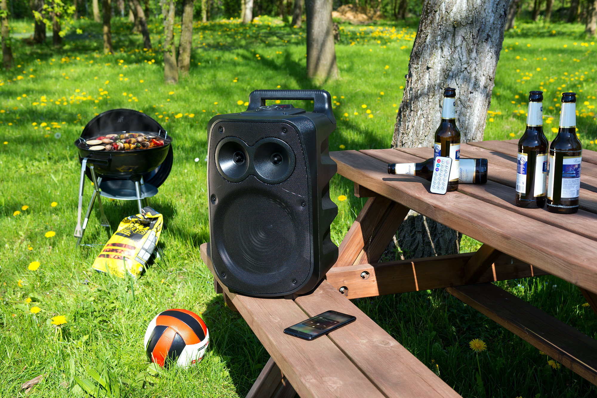 Der Lautsprecher ist immer dabei: Dank Akku und praktischem Tragegriff nimmt man die mobile Partyanlage auch mit auf Tour - zum Baggersee, Grillen im Freien oder auch nur in den Garten.