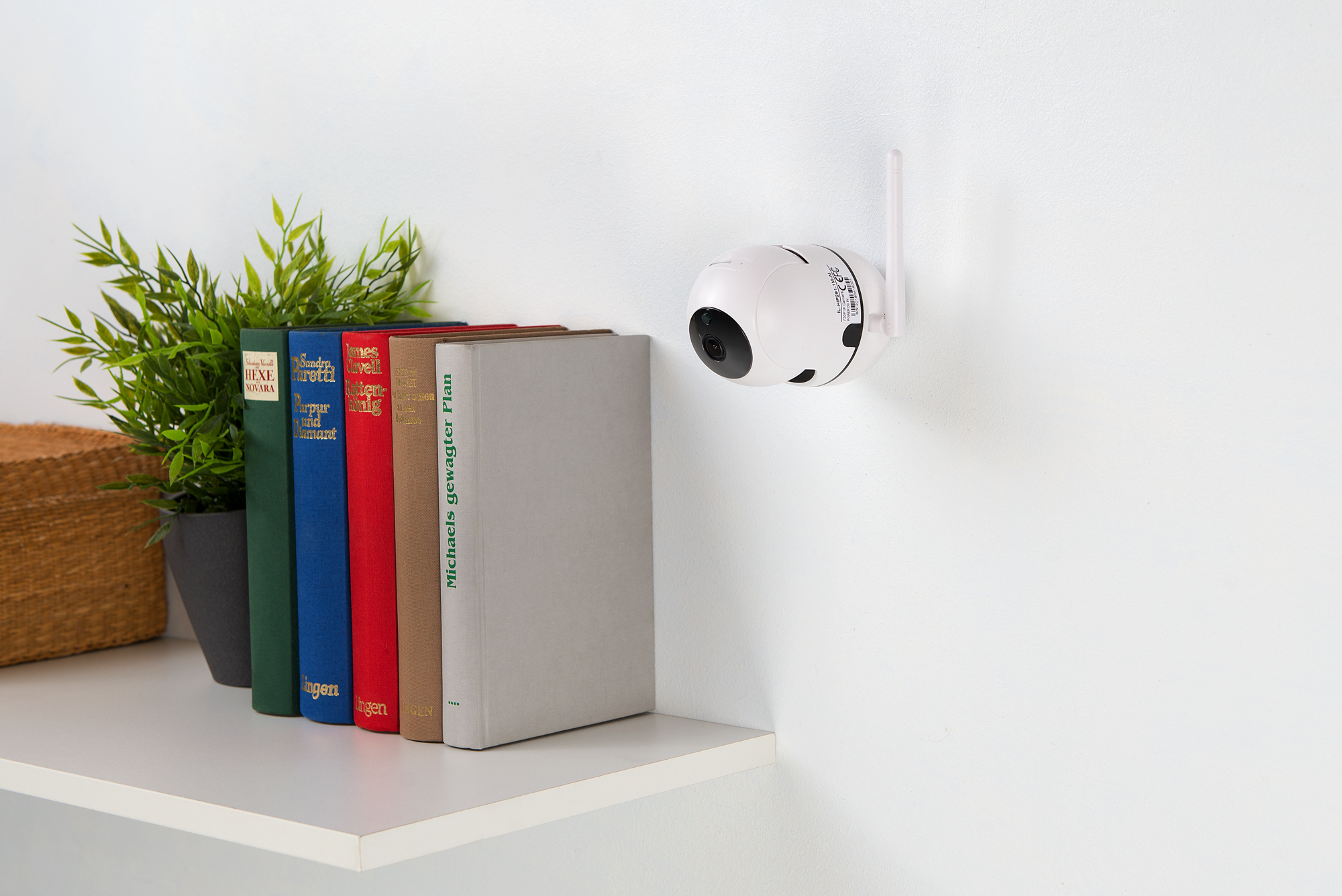 Der Sicherheits-Kamera von 7links entkommt niemand! Denn sie folgt automatisch Bewegungen von Personen und anderen Objekten im Bild. So deckt der Überwachungshelfer 360° eines Raumes ab - und damit jede Ecke in Wohnzimmer, Büro oder Lagerraum.