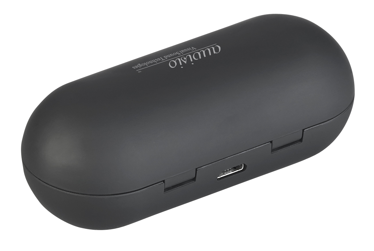 Immer gut versorgt: Über die leistungsstarke Powerbank wird das Headset immer aufgeladen, wenn man es nicht benutzt. Bis zu 3-mal, auch unterwegs ohne Anschluss ans Stromnetz. Zudem ist das Mini-Headset in der robusten Box sicher geschützt. Beim Entnehmen der Ohrhörer schalten sie sich gleich ein und koppeln sich selbstständig.
