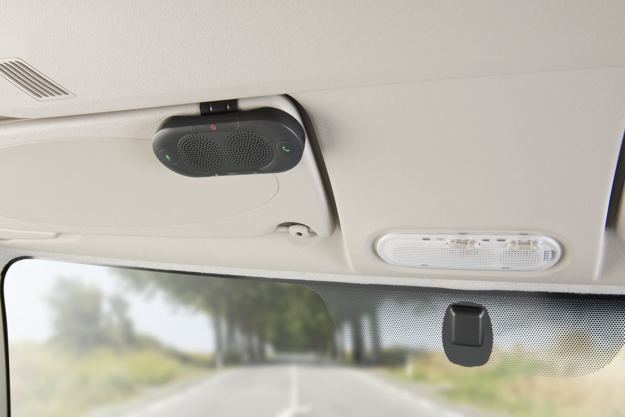 Im Auto sicher und legal telefonieren: Die Hände bleiben am Steuer und die Augen auf der Straße! Einfach die Freisprech-Einrichtung von Callstel per Clip an die Sonnenblende klemmen und schon kann’s losgehen! .
