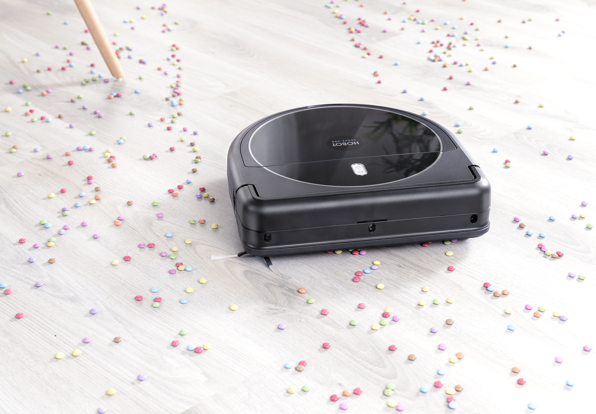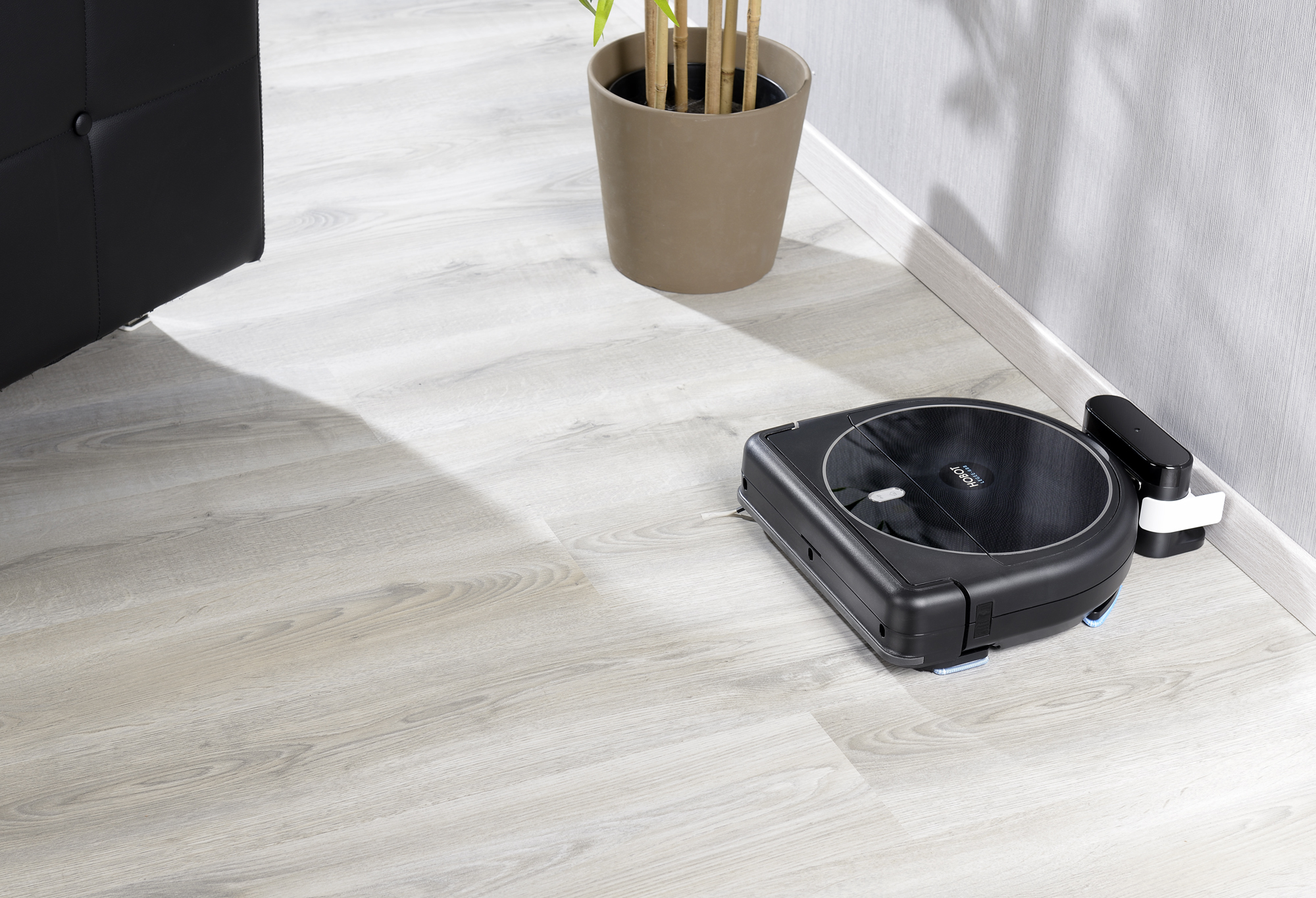 Macht auf Knopfdruck sauber: Der neue fleißige Roboter saugt den Boden praktisch unermüdlich. Dank seiner speziellen Form sowie der zusätzlichen Seitenbürste erreicht der Saug- und Wisch-Roboter von Sichler Haushaltsgeräte auch Ecken. Und weil er besonders flach ist, reinigt er sogar unter Möbeln - ohne dass man sich bücken muss.