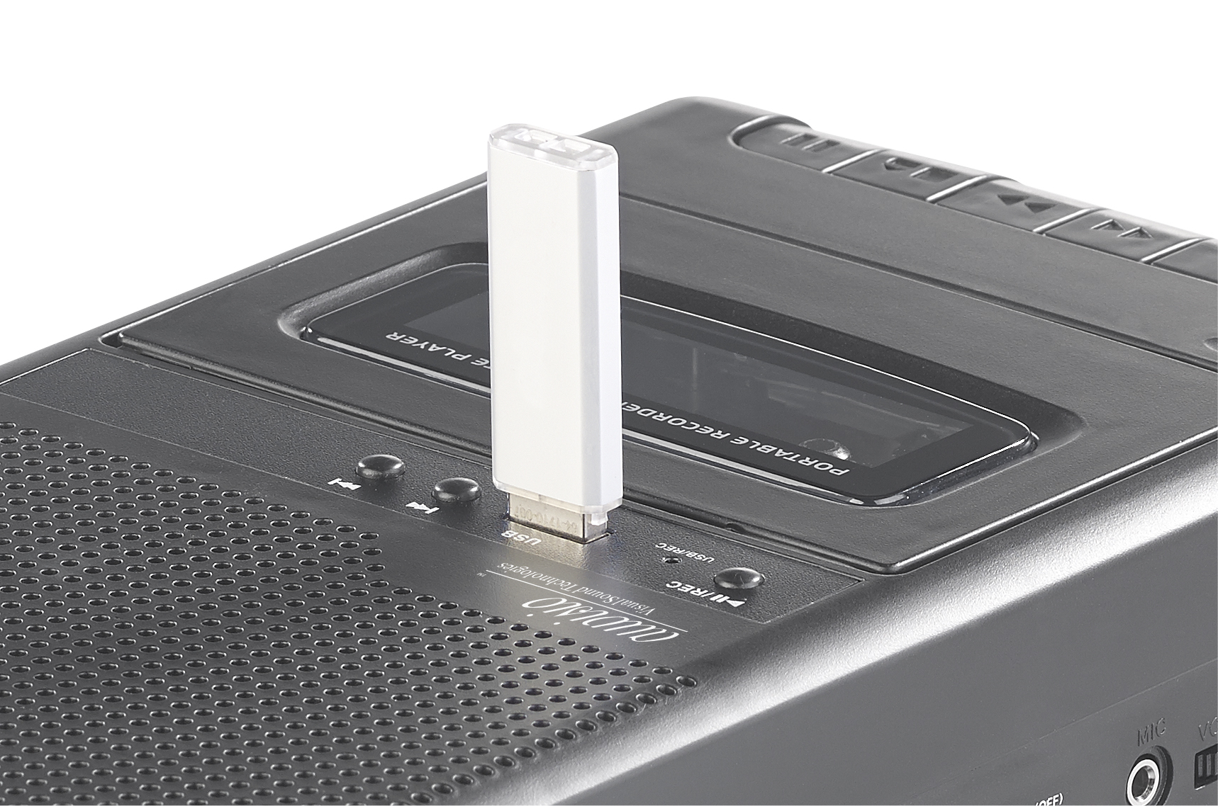 Die Schätze ins MP3-Zeitalter retten: Einfach einen USB-Stick einstecken und die die Aufnahmetaste drücken, während man die eingelegte Kassette wiedergibt. Das ist genau so einfach wie zu Zeiten, als man noch das Radioprogramm auf Kassette aufgenommen hat!