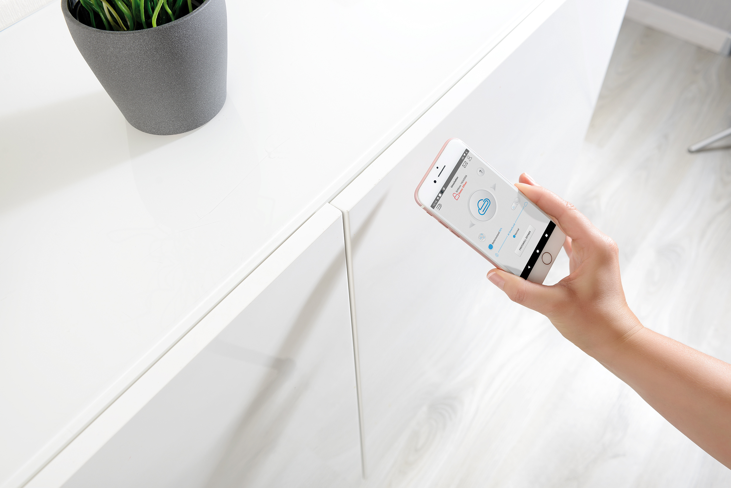 Schlüsselfrei dank kostenloser App: Zum Entriegeln nutzt man einfach das Smartphone. Und dank einstellbarer Verriegelungs-Automatik braucht man nur die Schublade oder Tür zu schließen!