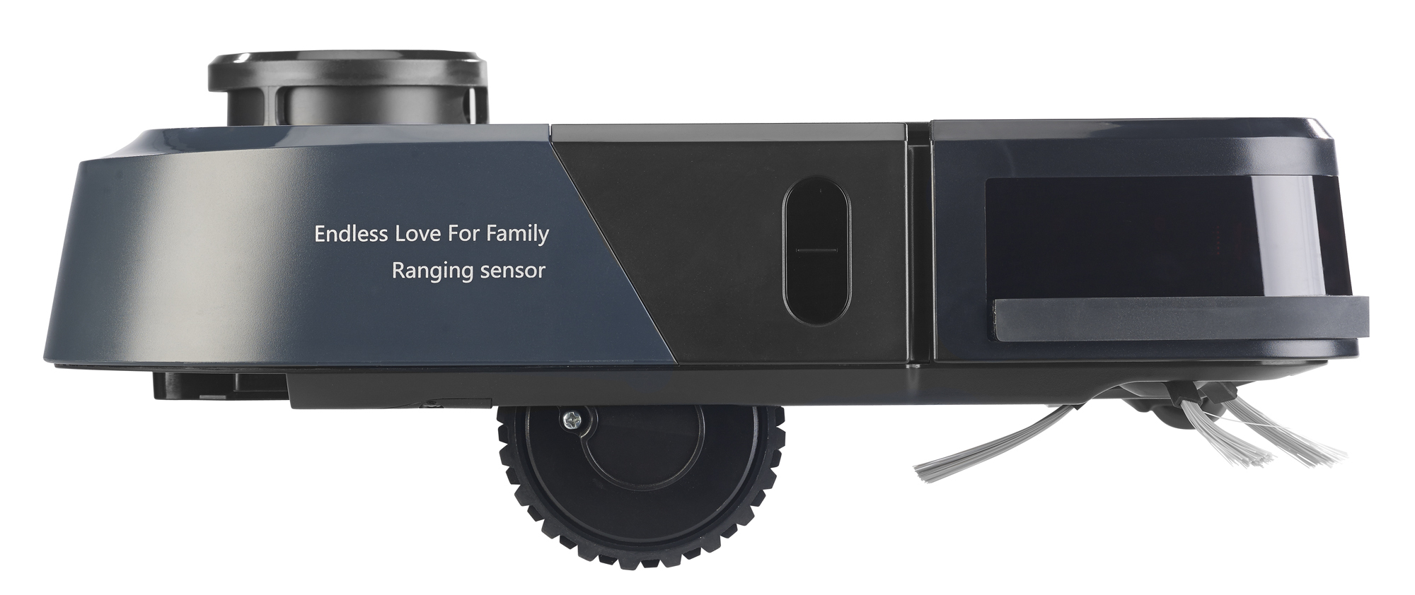 Kommt überall hin: Dank flachem Design fährt der Roboter mühelos z.B. unter Sofa, Bett und Kommode. Auch an den Rändern beseitigt er Schmutz mithilfe seiner langen rotierenden Seitenbürste.