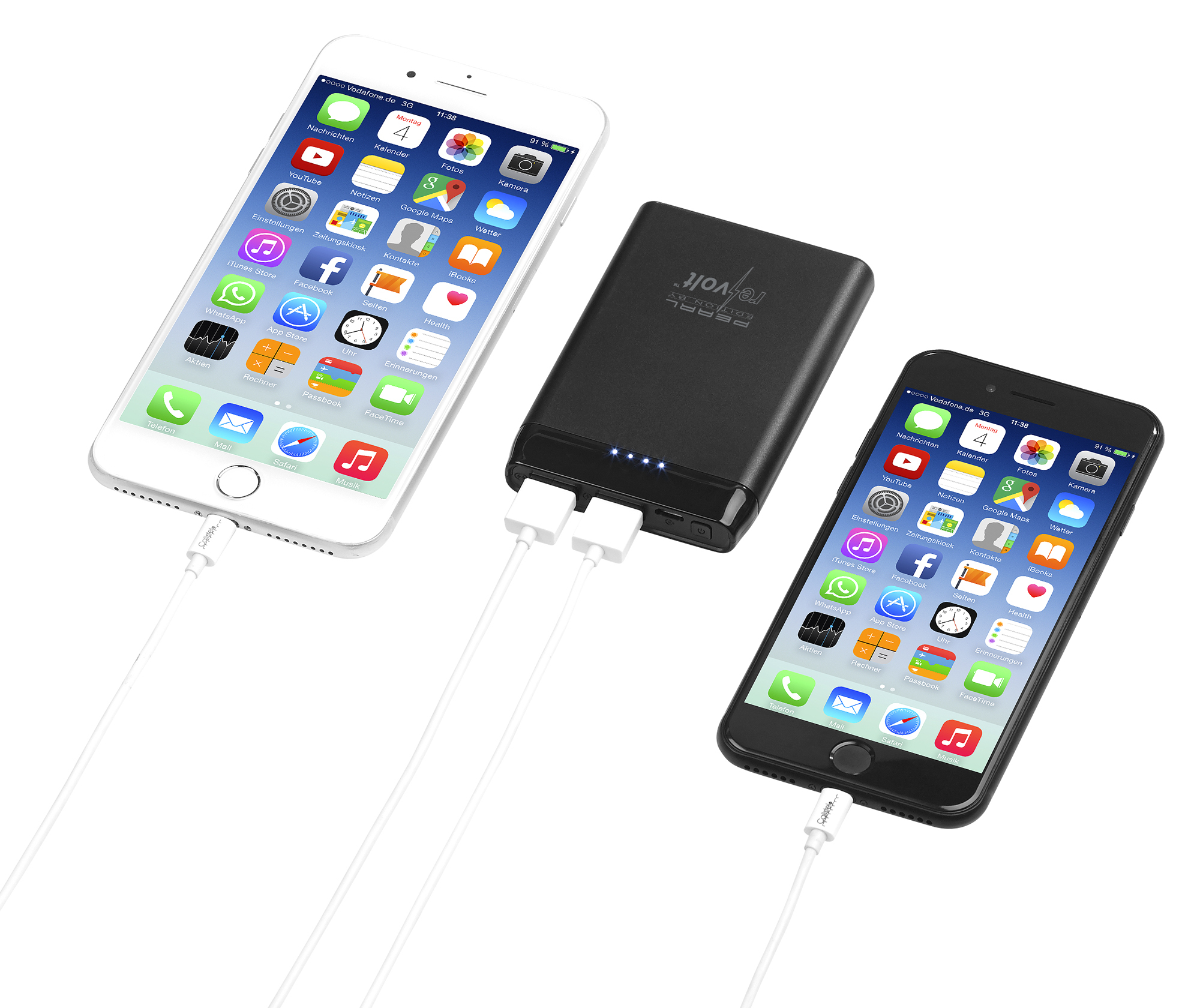 Zwei Geräte gleichzeitig laden, wie z.B. Smartphone und E-Book-Reader. Mit bis zu 2,4 A versorgt man auch stromhungrige Geräte wie Tablet-PCs unterwegs mit neuer Energie. Und sogar beim Aufladen der Powerbank lädt man seine Mobilgeräte weiter.