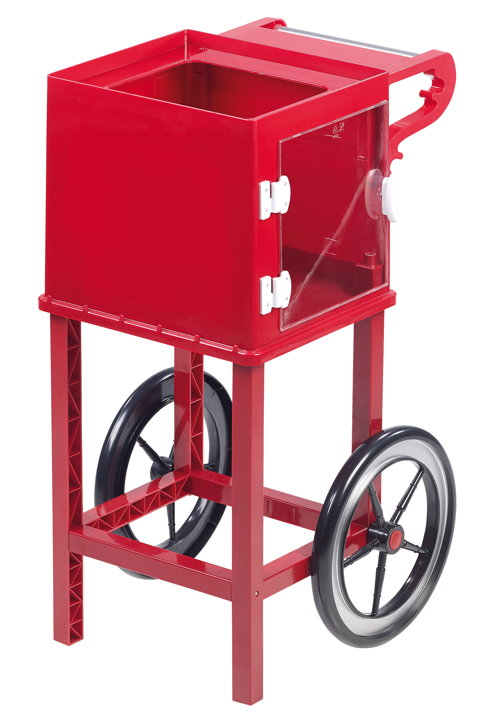 Der ideale Ort für die Maschine: Einfach die Popcorn-Maschine auf den Wagen stellen. Durch die integrierten Räder lässt er sich einfach ziehen. Dank großem Stauraum hat man zudem Mais, Zucker & Co. immer griffbereit.