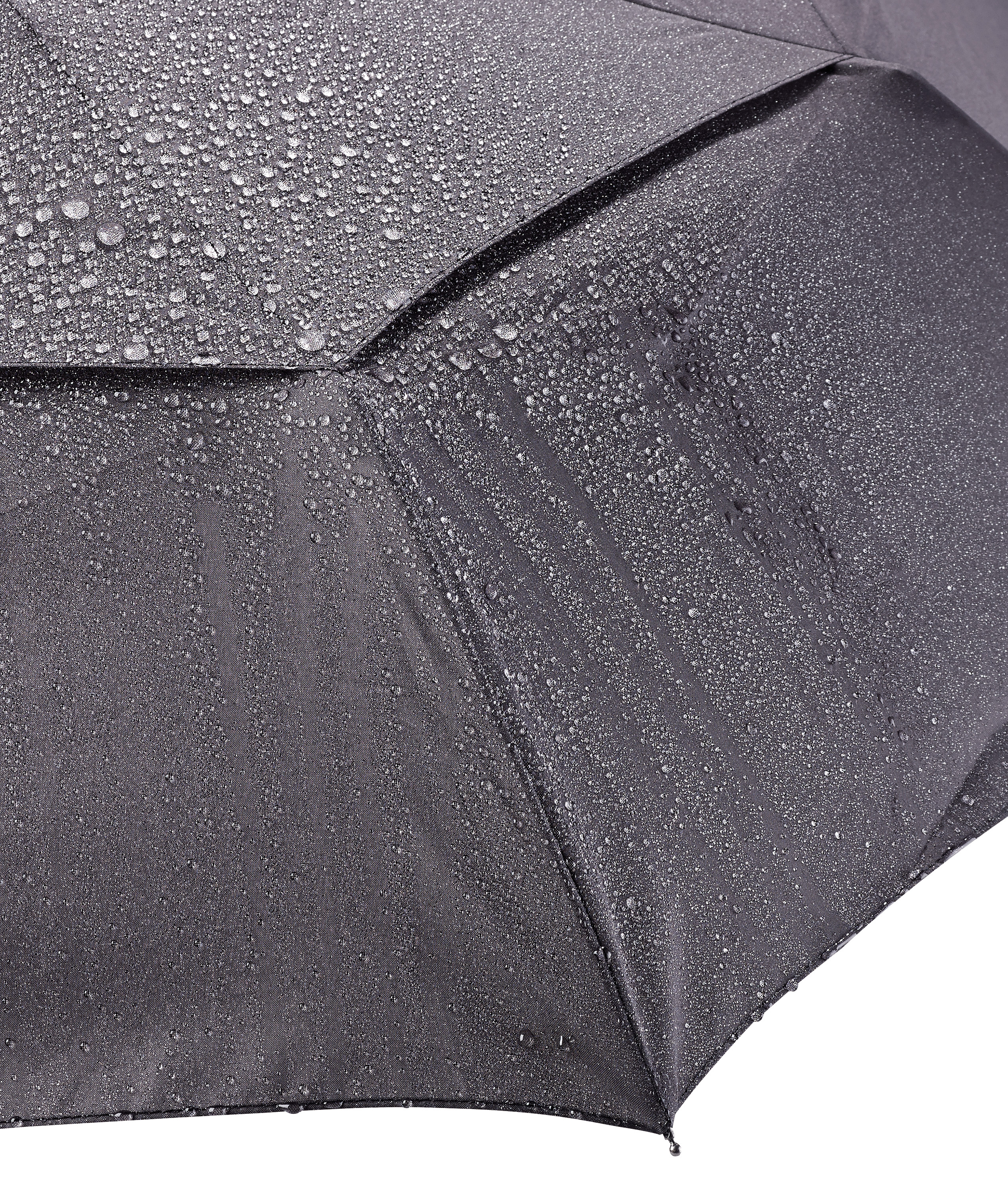 Kompakt verstaubar: Ist der Schirm zugeklappt, passt er locker in die Handtasche oder den Rucksack. Damit ist man bei spontanen Wolkeneinbrüchen jederzeit bestens vorbereitet.