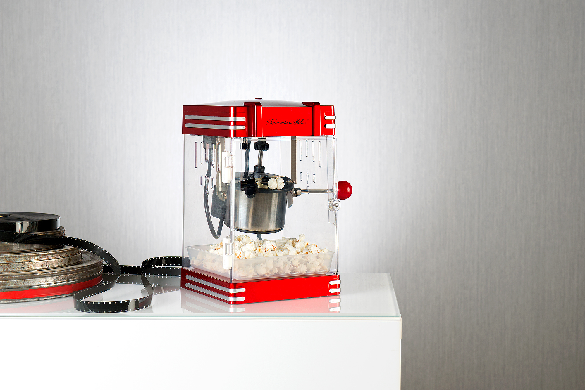 Im coolen roten Retro-Design: Dank dem Look der 50er- Jahre wird das Popcorn-Machen zu einem echten Erlebnis. Toll für Kinder: Durch das rundum transparente Gehäuse beobachten sie ganz genau, was bei der Zubereitung passiert.