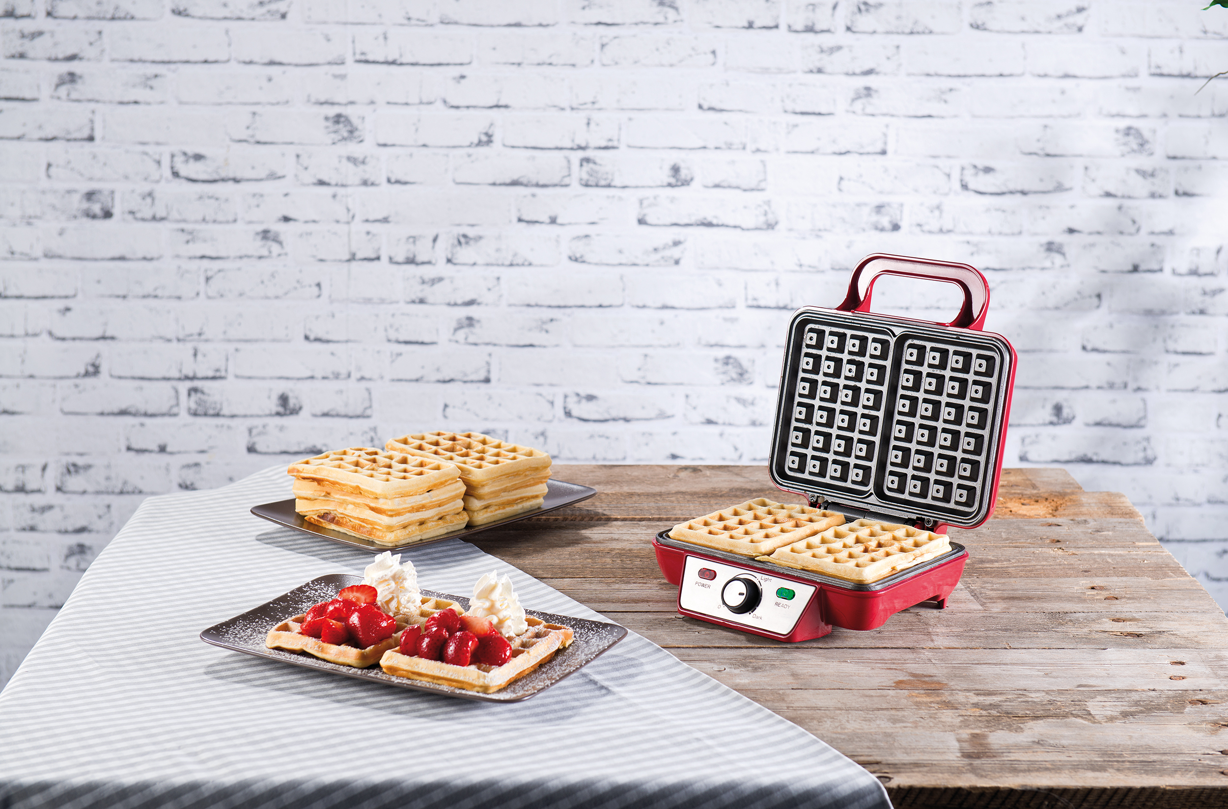 Waffeln frisch und lecker genießen: Im Handumdrehen backt man mit dem Waffeleisen von Rosenstein & Söhne belgische Waffeln für das Frühstück, Kaffeekränzchen & Co.