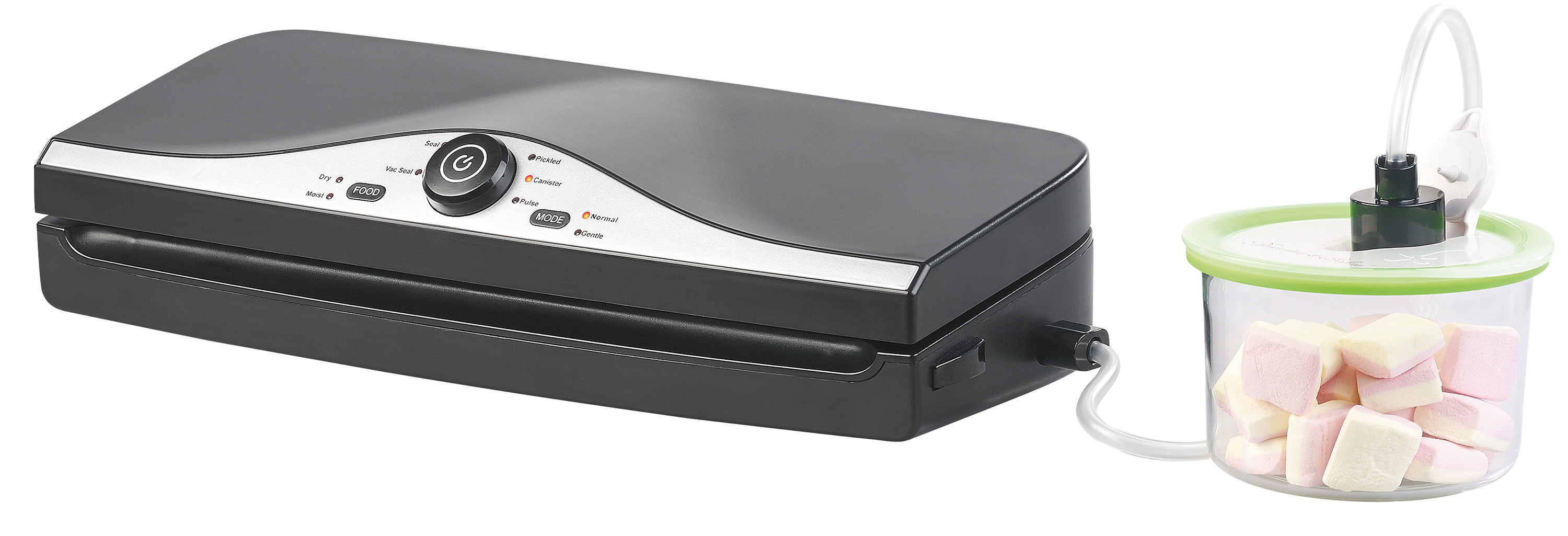 (lifepr) (Buggingen, 22.04.2020) Dieser Vakuumierer kann nicht nur Folien vakuumieren, sondern auch Dosen mit Öffnung. Auch empfindliche Lebensmittel wie Himbeeren und Fisch lassen sich gefahrlos vakuumieren.