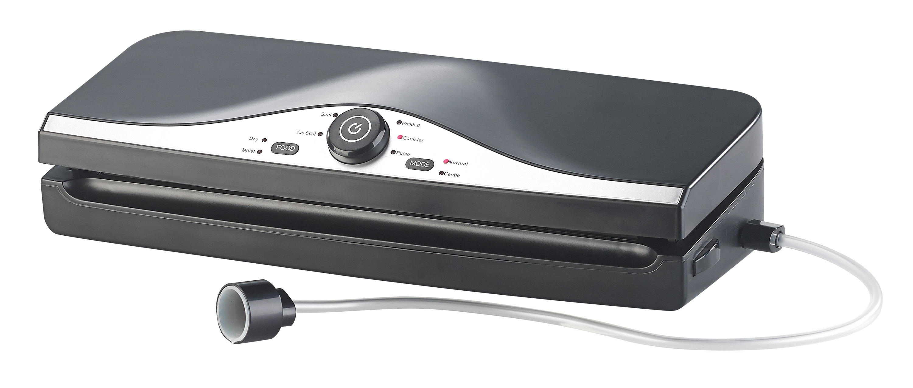 Ideal für Fisch, Fleisch und Obst: Dank Druckregulierung vakuumiert man empfindliche Lebensmittel wie Brot und Beeren ganz behutsam. Fisch und andere feuchte Lebensmittel lassen sich gefahrlos dank Flüssigkeits-Abscheider vakuumieren. Und falls mal Chipsreste übrig sind, schweißt man die Tüte einfach zu - auch ohne Vakuum!