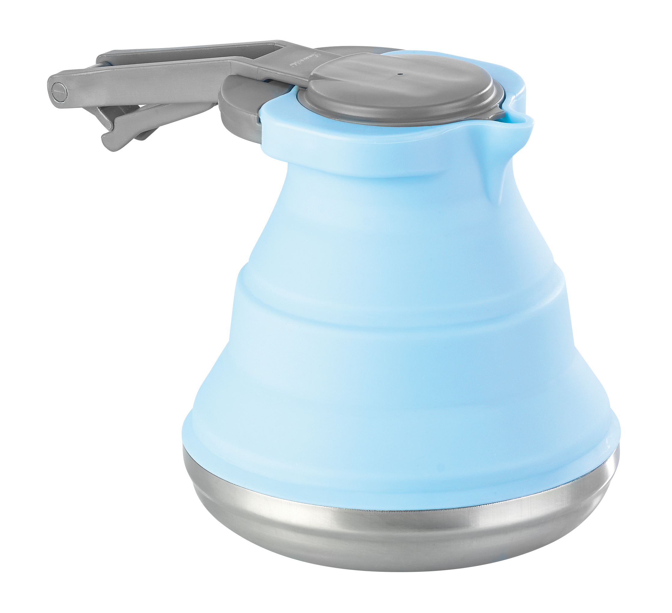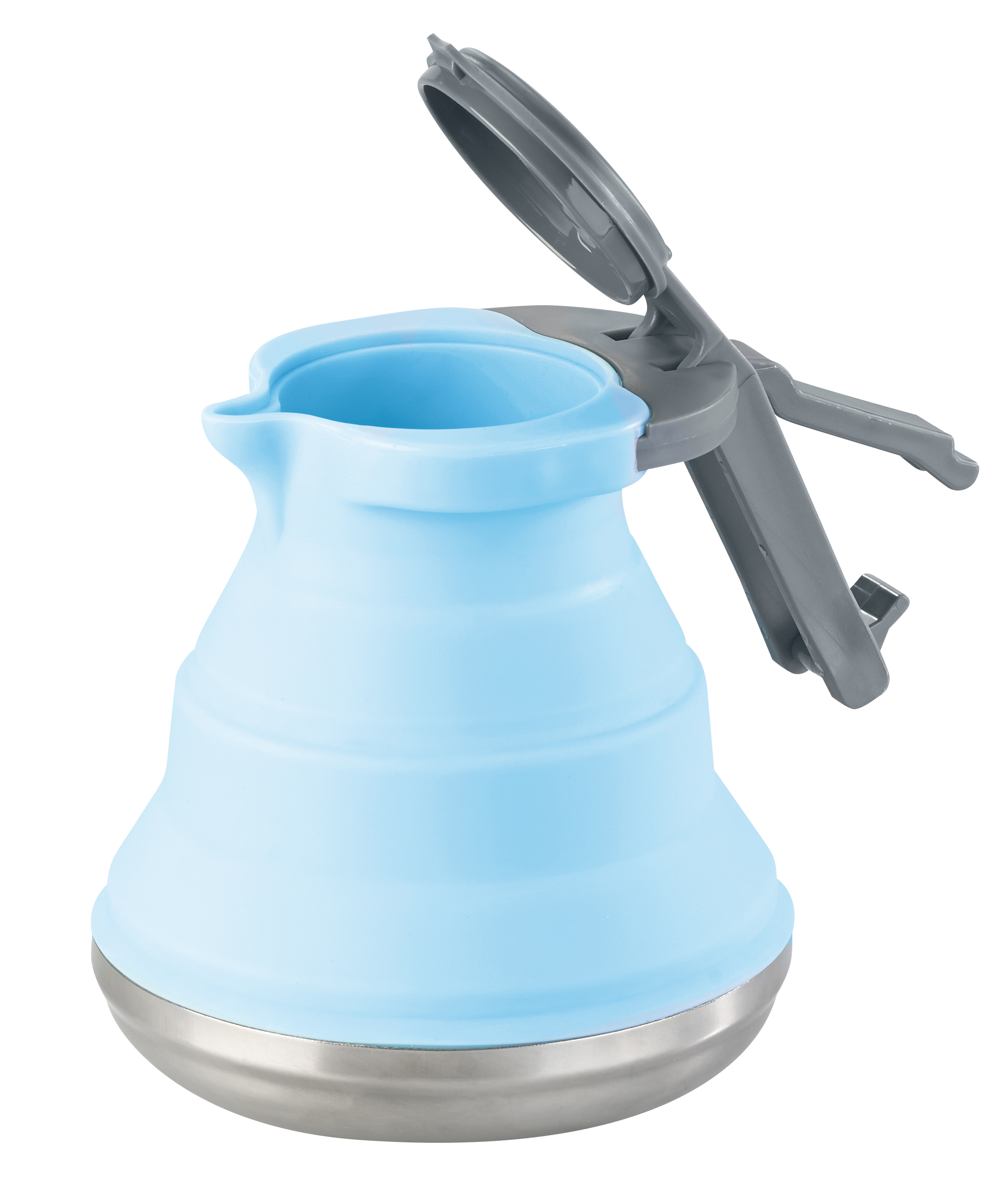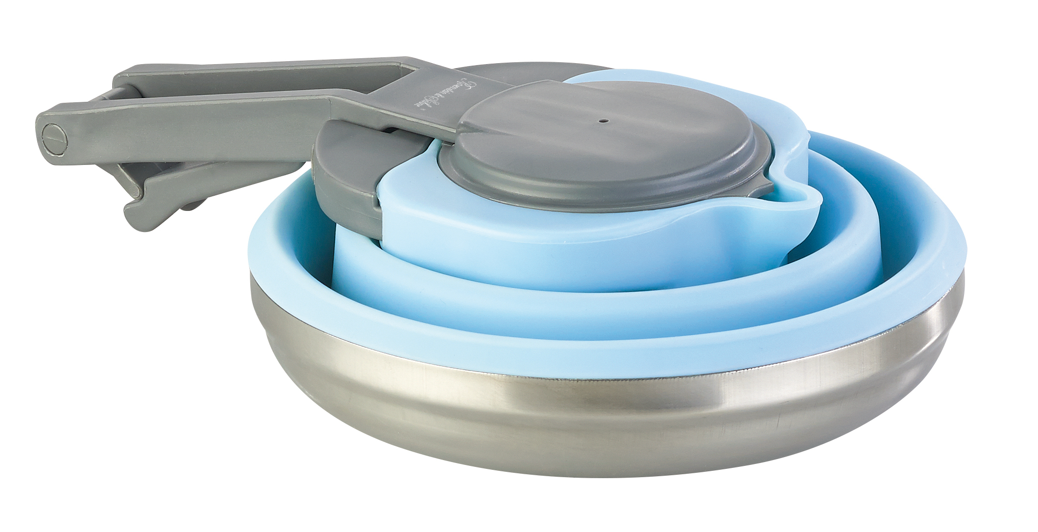 (lifepr) (Buggingen, 27.05.2020) Das Platzspar-Wunder: Dieser kleine Wasserkessel lässt sich einfach zusammenfalten und fasst 1,5 Liter. Ideal für Camping oder die kleine Küche.