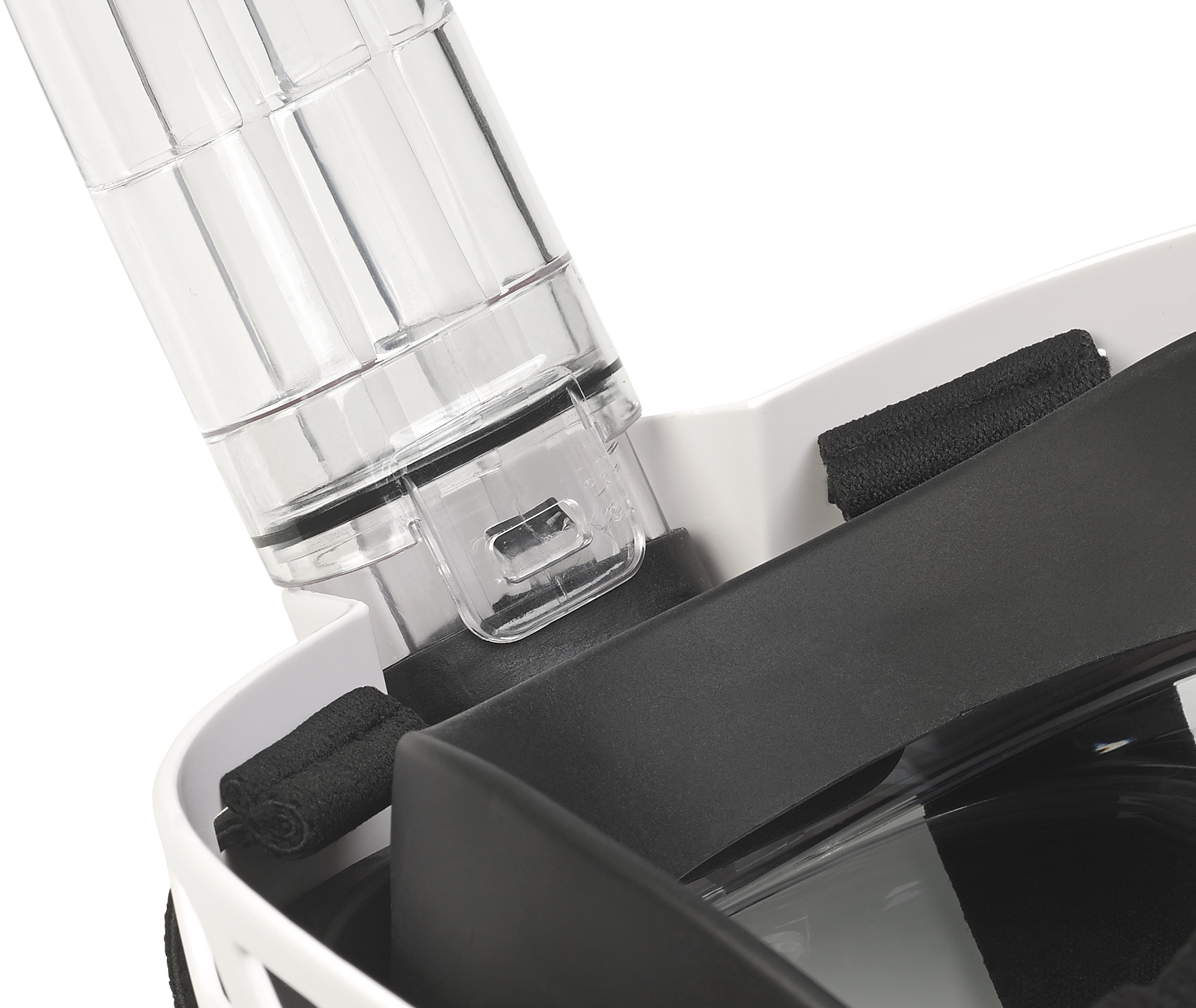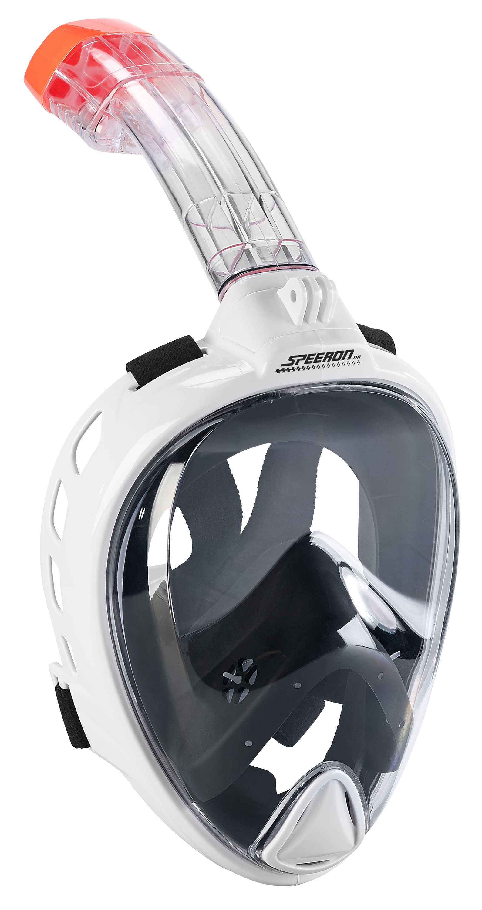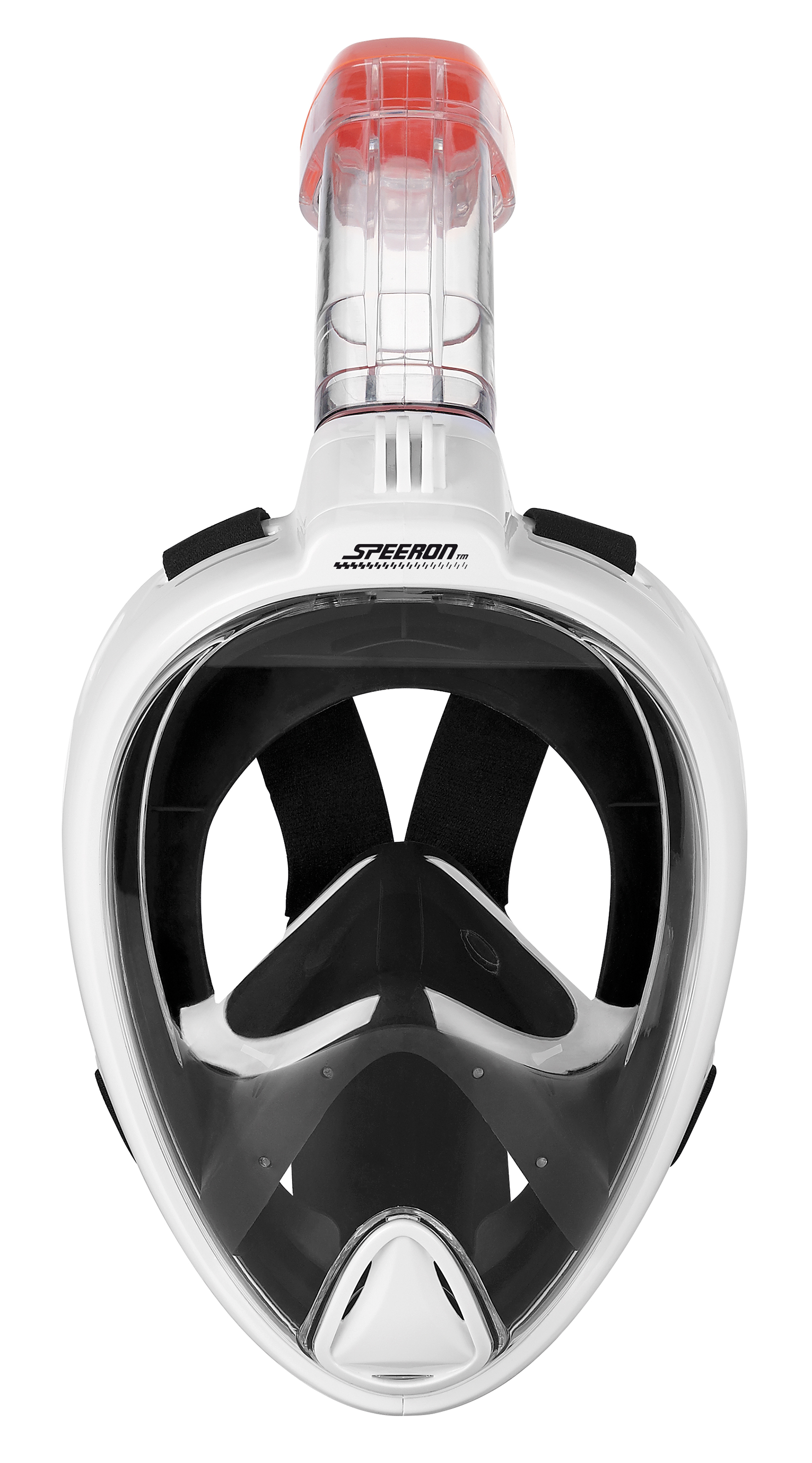Atmen, ohne Wasser zu schlucken: Über Wasser atmet man in der Maske von Speeron bequem durch den Schnorchel. Beim Tauchen verhindert ein Schwimmer an der Schnorchel-Spitze, dass Wasser eindringt. So bleiben Pool-, Salz- oder Süßwasser draußen, während man ungestört die Welt unter der Wasseroberfläche betrachtet.