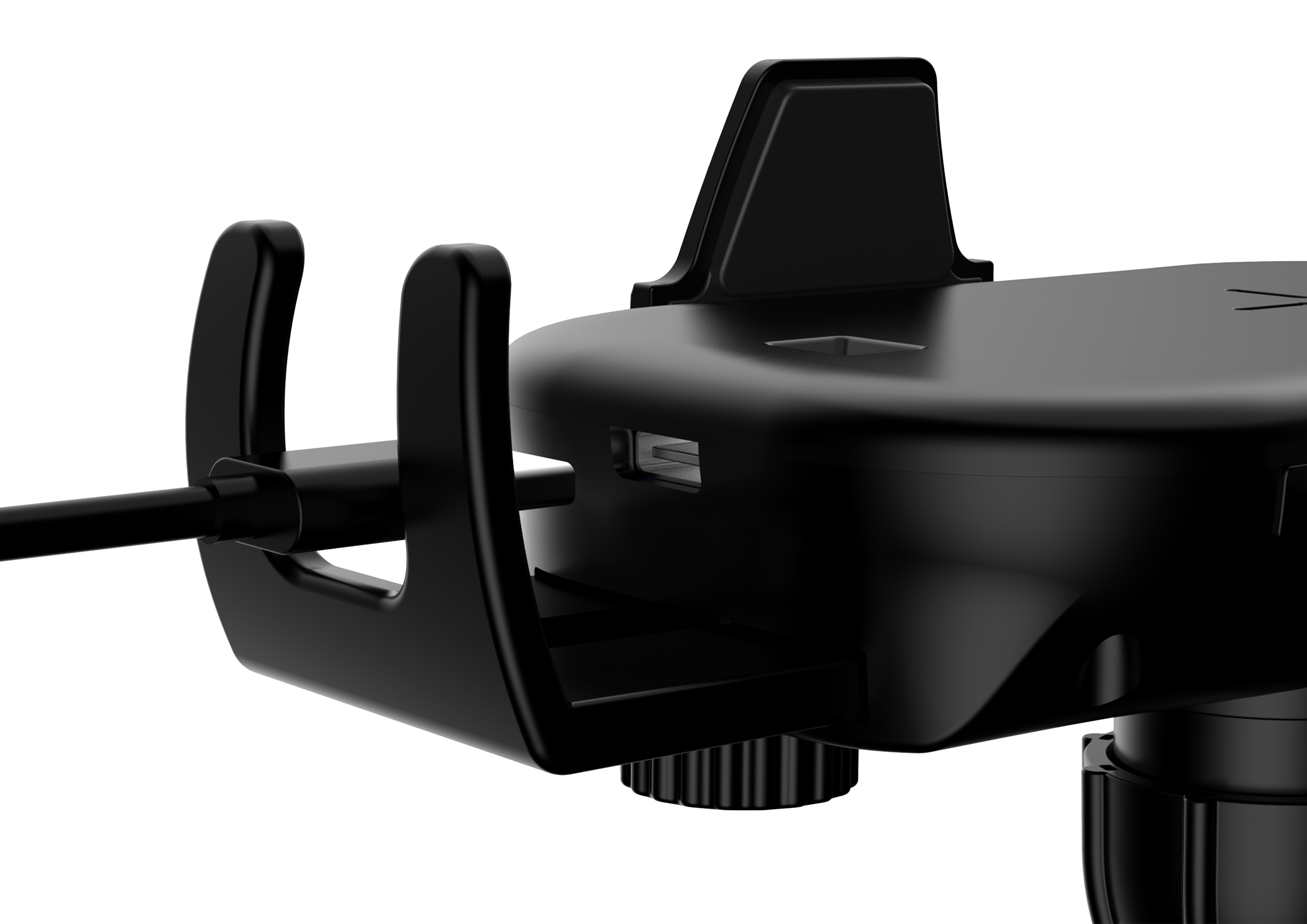 Komfortable Einhand-Bedienung: Ist das USB-Ladekabel für den Ladehalter an dem Kfz-USB-Ladegerät angeschlossen, fahren die Halterklammern für das Smartphone selbstständig auseinander. Und klemmen es nach dem Einlegen natürlich auch von alleine optimal fest!
