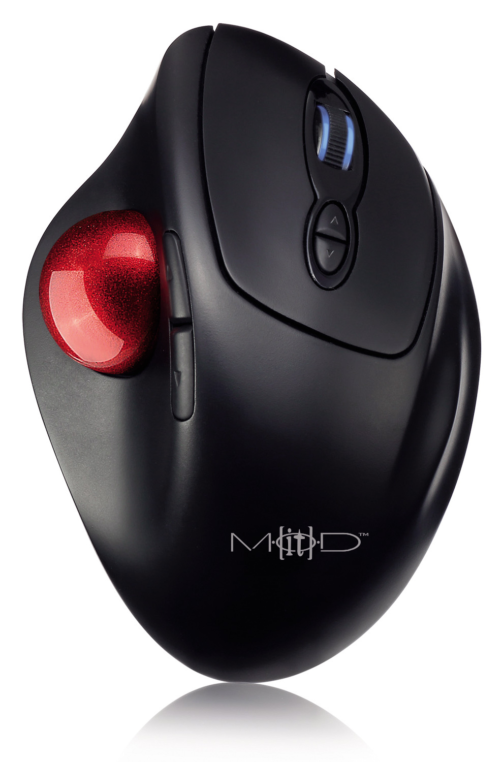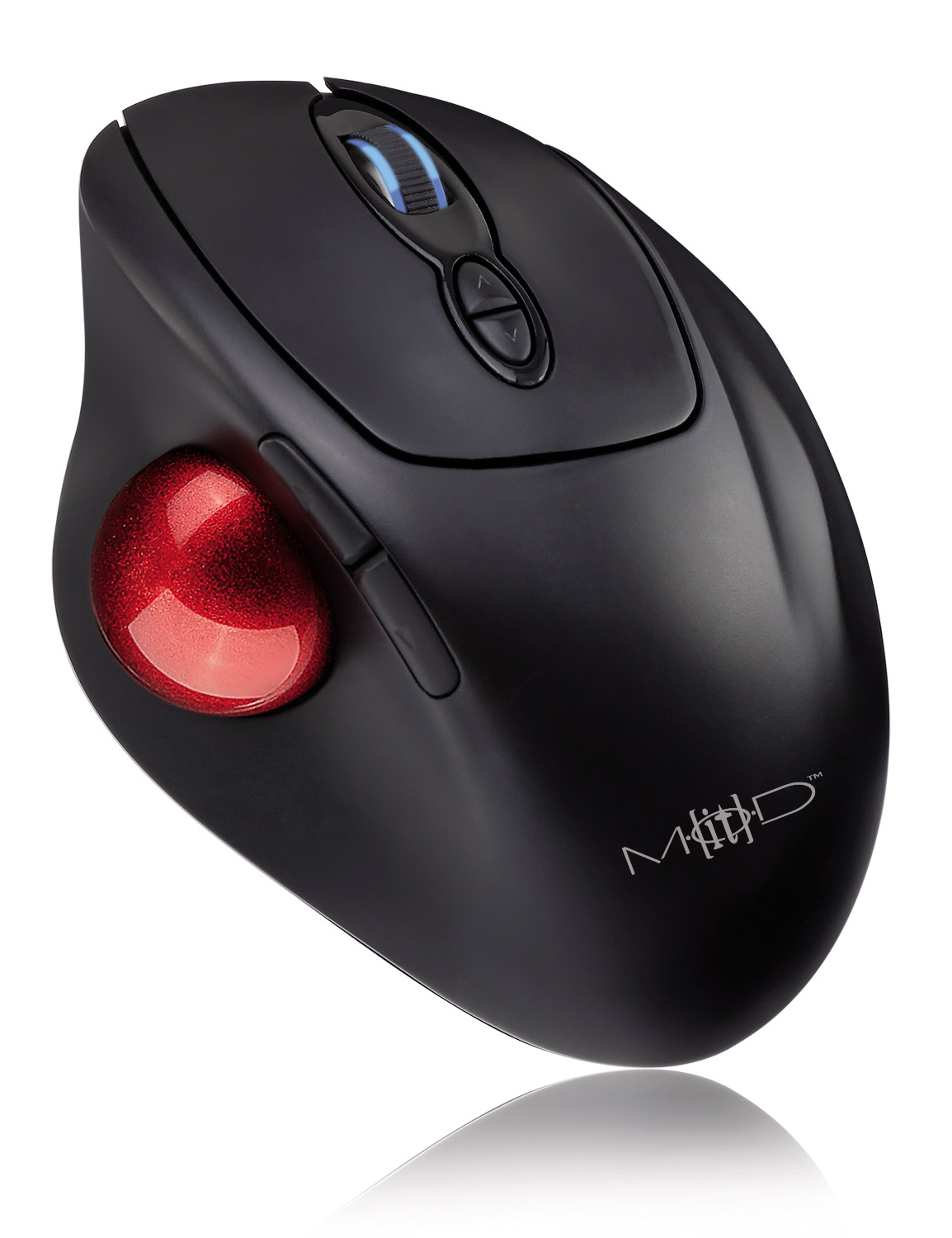 Diese Funk-Laser-Trackball von Mod-it entlastet den Arm! Denn man steuert den Mauszeiger per Trackball nur mit dem Daumen - ohne die Maus zu bewegen.