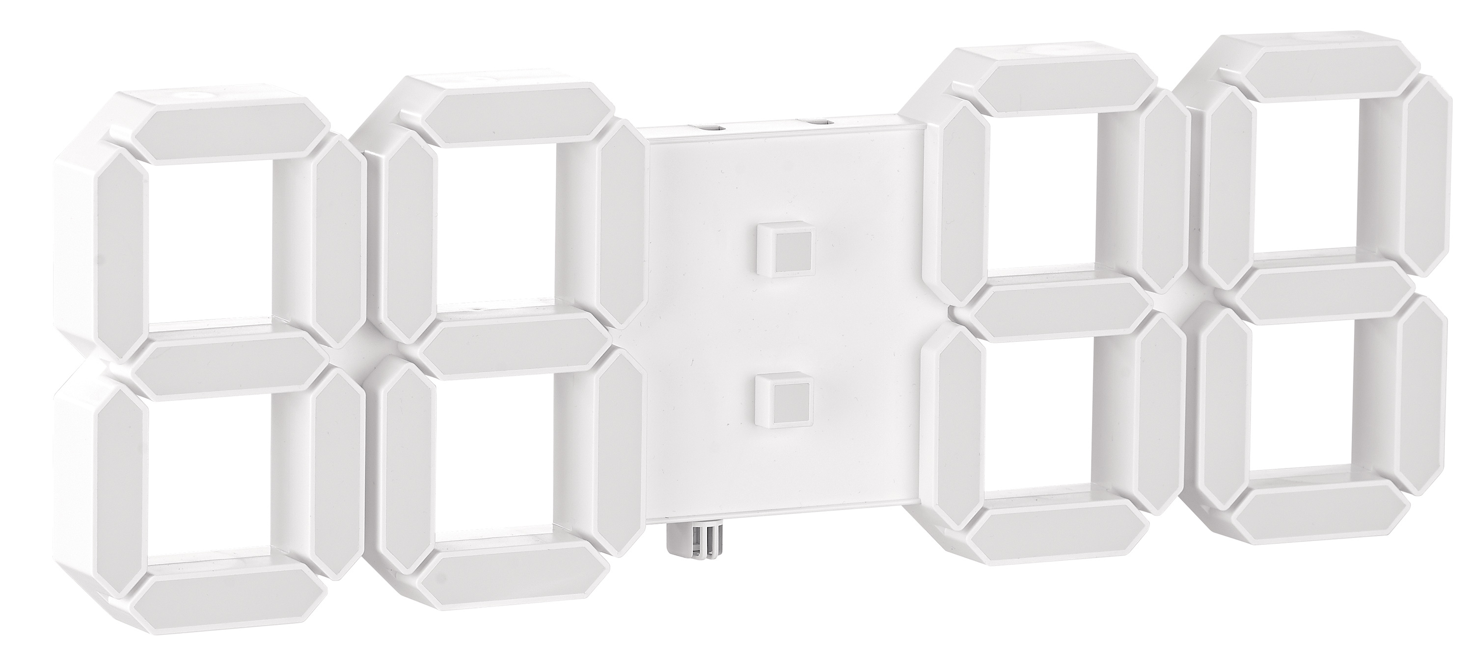 Die genaue Uhrzeit und Raum-Temperatur als leuchtender Blickfang: Die große Tisch- und Wanduhr zeigt mit plastischen, weiß leuchtenden LED-Ziffern, was die Stunde geschlagen hat. Und auf Wunsch sogar die Temperatur. Ein Schmuckstück für die Wand in Schlaf- und Wohnzimmer, Küche oder Büro.