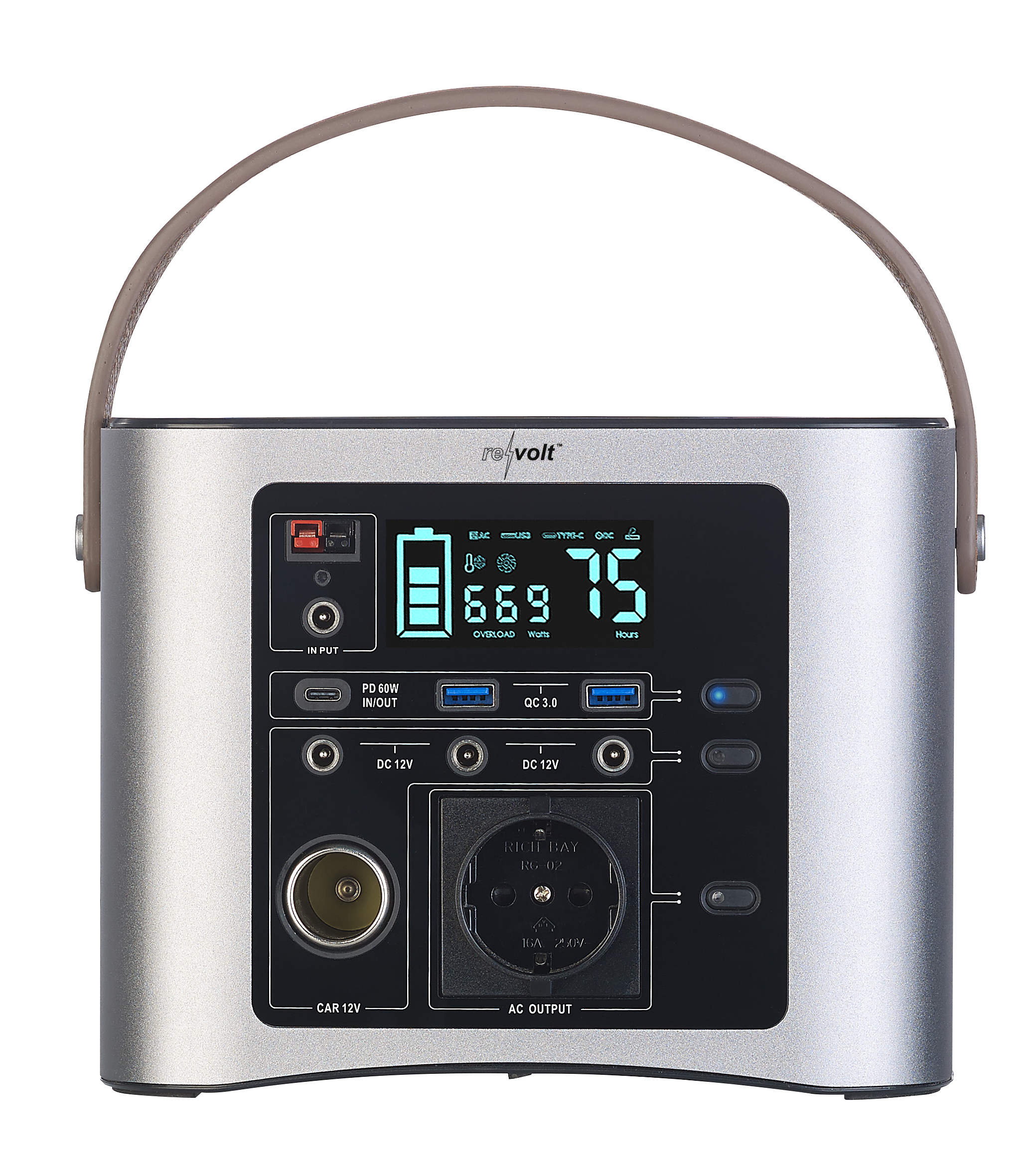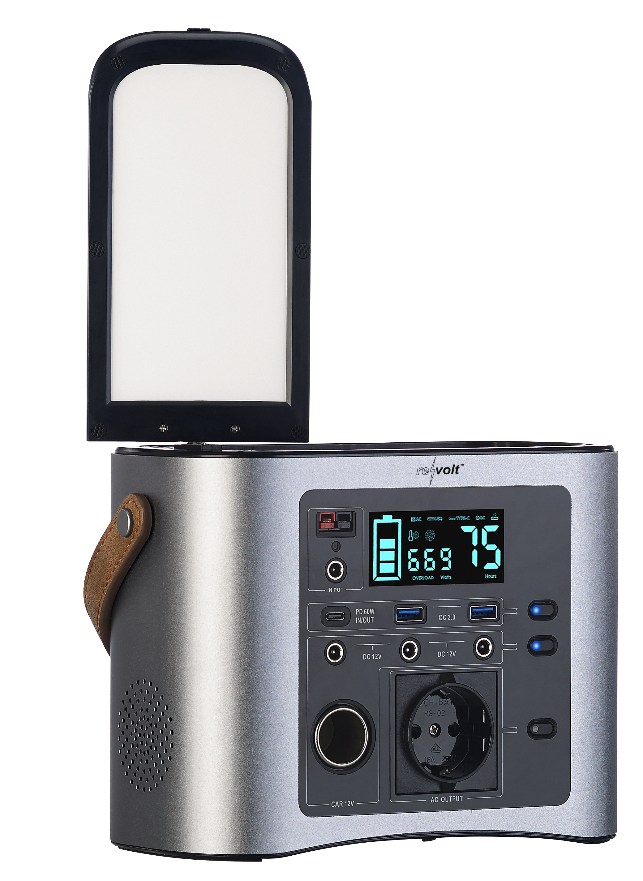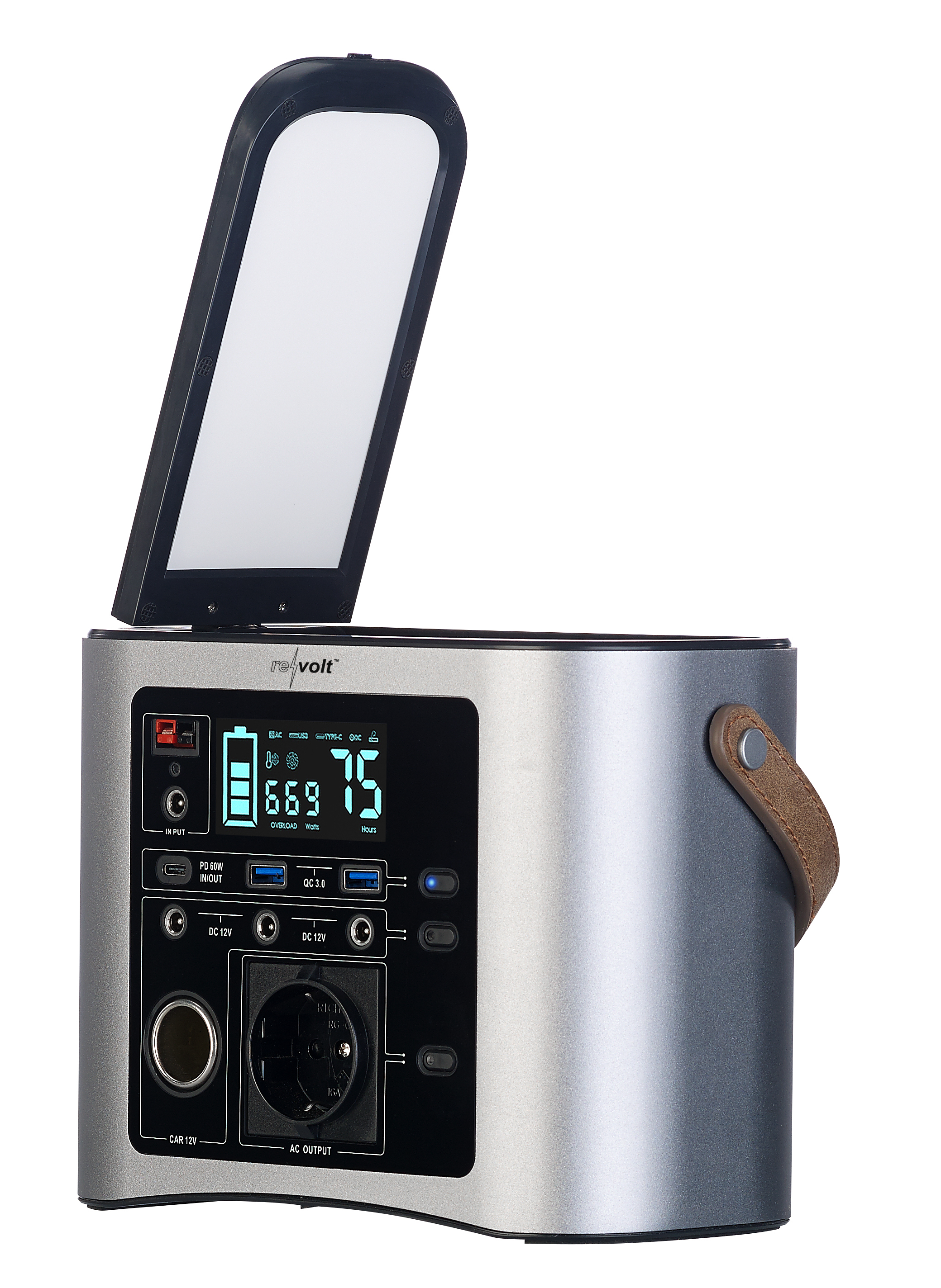 Geballte Extraportion Energie für unterwegs: Die mobile High-End-Powerbank von revolt im edlen Gehäuse mit Ledergriff versorgt einen bei Outdoor-Aktivitäten zuverlässig mit Strom - ob beim Camping oder Zelten. Aber auch bei Gartenfesten oder in Bereichen ohne Netzversorgung ist die ultrastarke Powerbank eine nützliche Stromreserve!